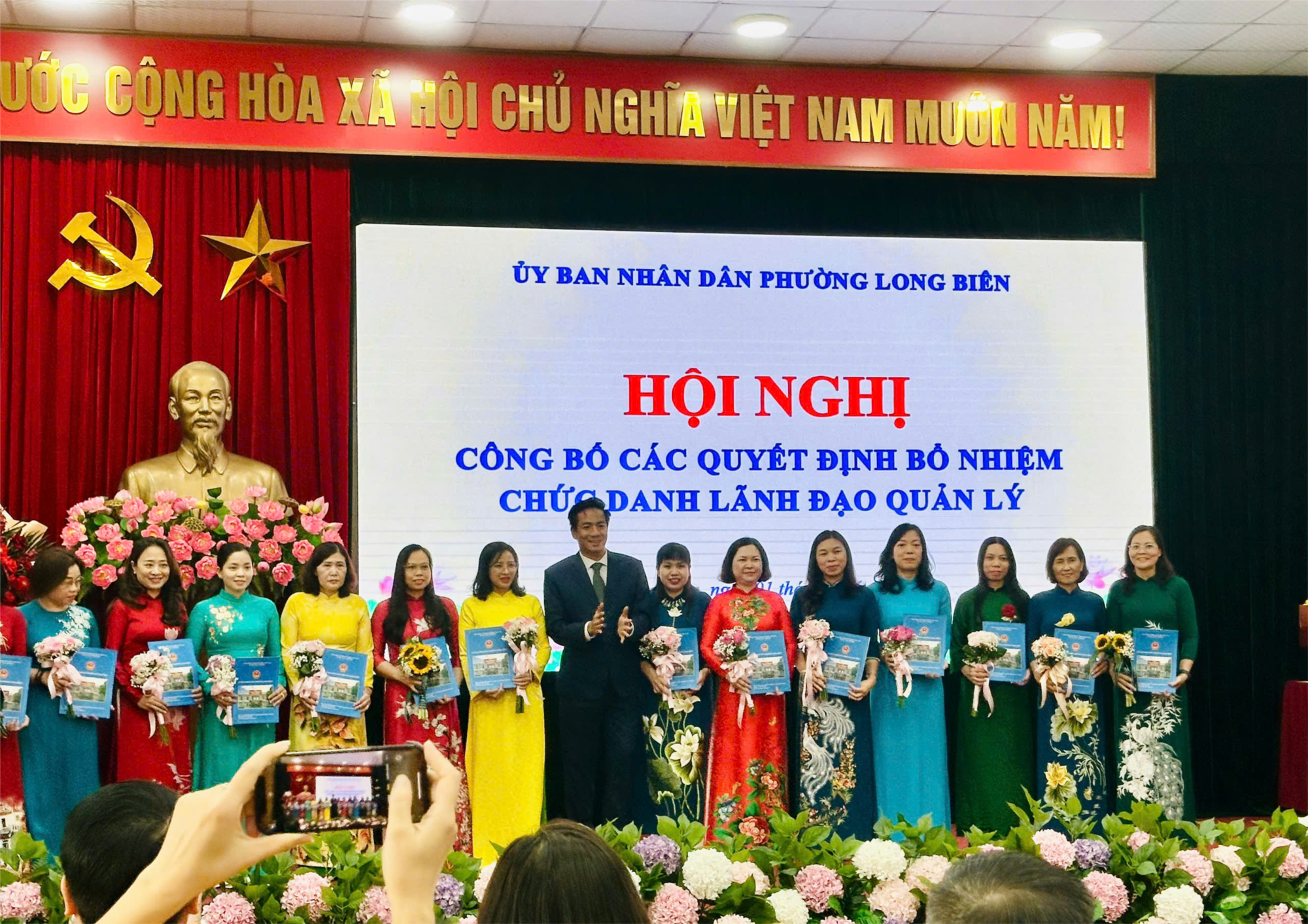 Tại Hội nghị, đồng chí Dương Kiều Ngọc Loan-Trưởng phòng Văn hóa -Xã hội phường Long Biên đã công bố các Quyết định bổ nhiệm chức danh trưởng, phó các phòng, ban, đơn vị theo đơn vị hành chính mới. Các đồng chí lãnh đạo UBND phường Long Biên đã trao quyết định và tặng hoa các đồng chí công chức, viên chức được bổ nhiệm. Theo các Quyết định, Ban giám hiệu trường Tiểu học Đoàn Kết, phường Long Biên, thành phố Hà Nội gồm có 03 đồng chí trong đó đồng chí Nguyễn Thị Liễu giữ chức vụ Hiệu trưởng, đồng chí Nguyễn Văn Tuấn và đồng chí Lưu Thị Chính Phương giữ chức vụ Phó hiệu trưởng.