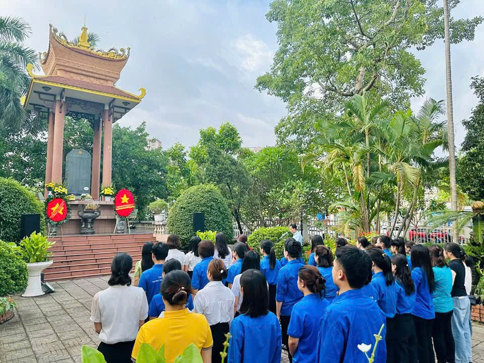 Trước khi buổi Lễ bắt đầu các thầy cô trong chi đoàn giáo viên trong màu áo xanh tình nguyện đã tích cực quét dọn lá cây, lau sạch sẽ khu vực Đài tưởng niệm. Trong không khí trang trọng và xúc động, đoàn đã kính cẩn dâng vòng hoa mang dòng chữ “Đời đời nhớ ơn các anh hùng liệt sĩ”, thắp nén hương thơm, dành một phút mặc niệm để bày tỏ lòng thành kính, biết ơn sâu sắc đối với những người con ưu tú của dân tộc đã anh dũng chiến đấu, hy sinh vì độc lập, tự do cho Tổ quốc.