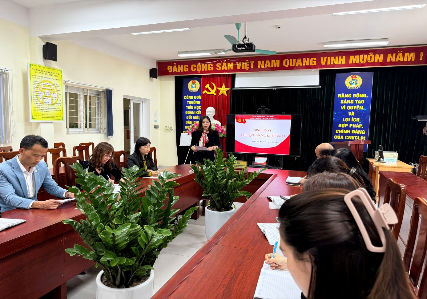 Chiều ngày 03/1/2025 tại Phòng Hội đồng sư phạm Chi bộ trường Tiểu học Đoàn Kết tổ chức họp thường kỳ tháng 01/2025 và sinh hoạt tư tưởng chính trị với chủ đề “Nghiên cứu, quán triệt tư tưởng chỉ đạo, định hướng lớn của Đảng và đồng chí Tổng Bí thư Tô Lâm về Kỷ nguyên mới – Kỷ nguyên vươn mình của dân tộc" với sự có mặt của 14 đồng chí đảng viên chính thức, 02 đồng chí đảng viên dự bị.