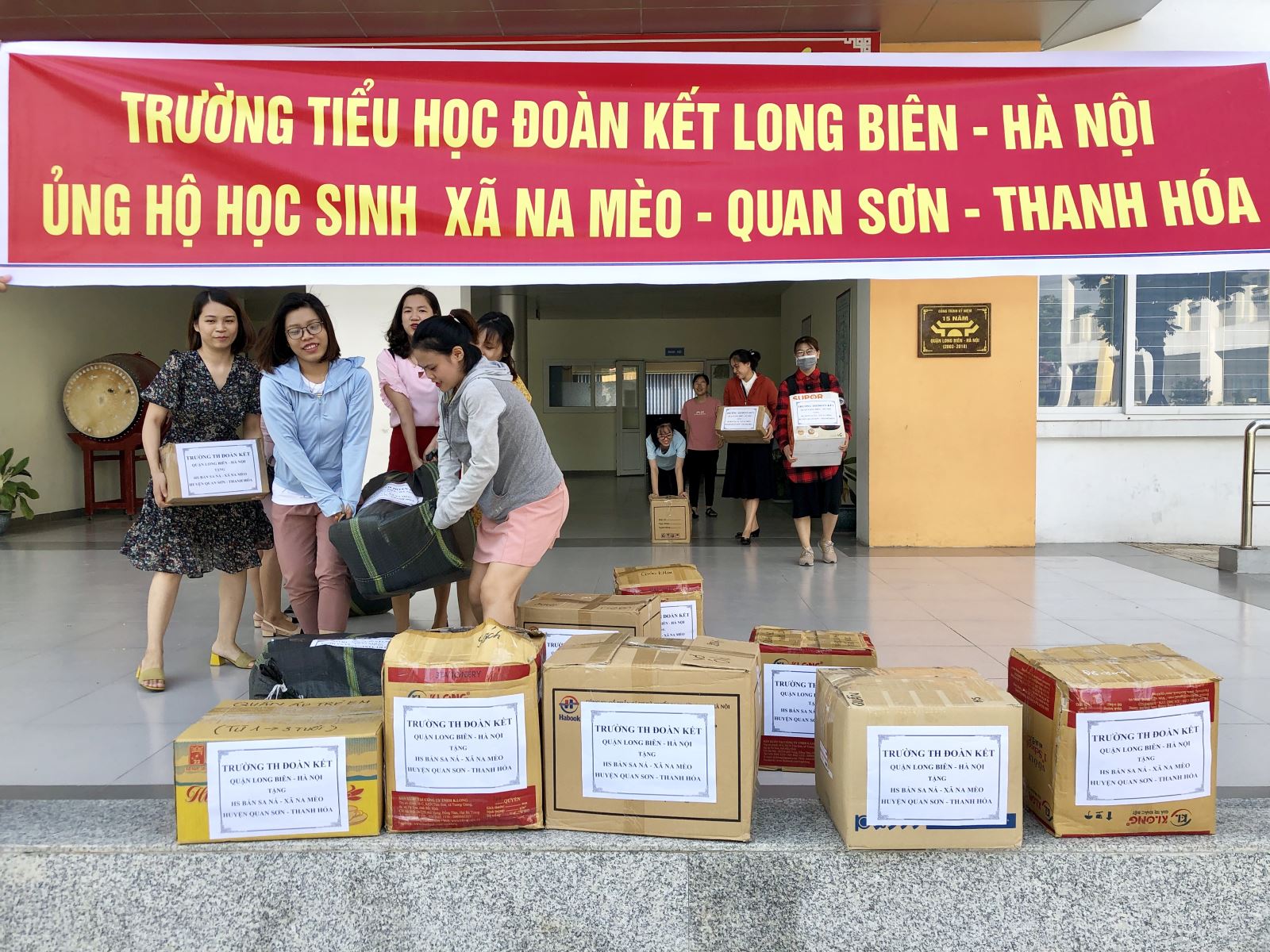 Thanh Hó !important;a là một trong những tỉnh thành hứng chịu nhiều thiệt hại nặng nề do ảnh hưởng của hoàn lưu bão số 03 ngày 3/8/2019 vừa qua. Huyện Quan Sơn và Mường Lát là hai huyện của tỉnh bị thiệt hại nặng nề nhất về người và của. Trong đó có nhiều nhà cửa, trường học, nhà văn hóa,… bị lũ cuốn trôi. Đứng trước nỗi đau và mất mát của người dân nơi đây, công đoàn trường Tiểu học Đoàn Kết, quận Long Biên, thành phố Hà Nội đã kêu gọi sự ủng hộ, giúp đỡ của các em học sinh, các bác phụ huynh và cán bộ, giáo viên, nhân viên trong trường quyên góp đồ dùng, sách vở, quần áo,… tặng các em học sinh ở xã Na Mèo, huyện Quan Sơn, tỉnh Thanh Hóa. Chỉ trong một ngày phát động, công đoàn nhà trường đã nhận được 1664 quyển vở, hàng nghìn quyển sách giáo khoa, nhiều đồ dùng học tập như cặp sách, bút chì, bút mực, thước kẻ, … và những bộ quần áo cũ được giặt sạch sẽ. Ngoài ra, công đoàn nhà trường còn nhận được sự ủng hộ, đồng hành của Công ty CP Du lịch & Thực phẩm Sao Việt vận chuyển những món quà nhỏ từ Hà Nội vào thành phố Thanh Hóa.