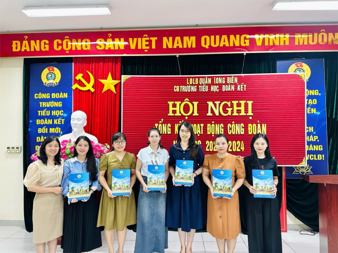 Thực hiện kế hoạch hoạt động công đoàn năm học 2023 – 2024, sáng ngày 31/5/2024, công đoàn trường Tiểu học Đoàn Kết tổ chức Hội nghị tổng kết hoạt động công đoàn năm học 2023 – 2024 và “Bữa cơm công đoàn” nhằm chào mừng 95 năm Ngày thành lập Công đoàn Việt Nam (28/7/1929 – 28/7/2024)