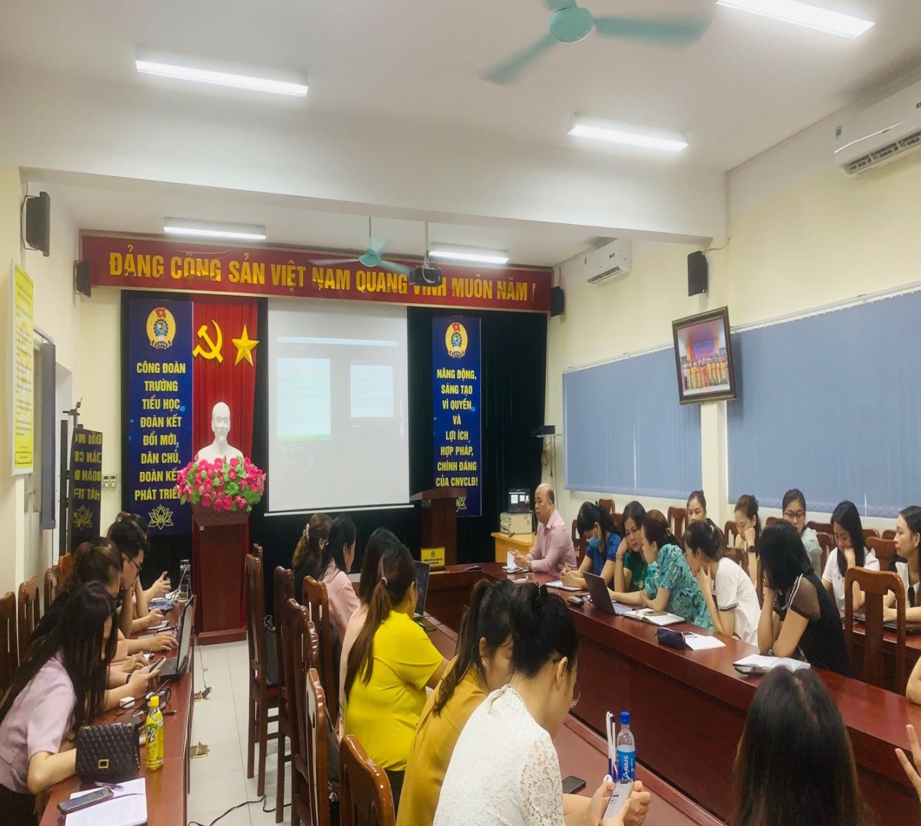 Thực hiện nhiệm vụ chính trị theo Quyết định 879 của Quận uỷ Long Biên, thực hiện kế hoạch năm học của nhà trường, sáng ngày 20/7/2023, tập thể cán bộ, giáo viên trường Tiểu học Đoàn Kết tham gia học chính trị hè năm 2023.