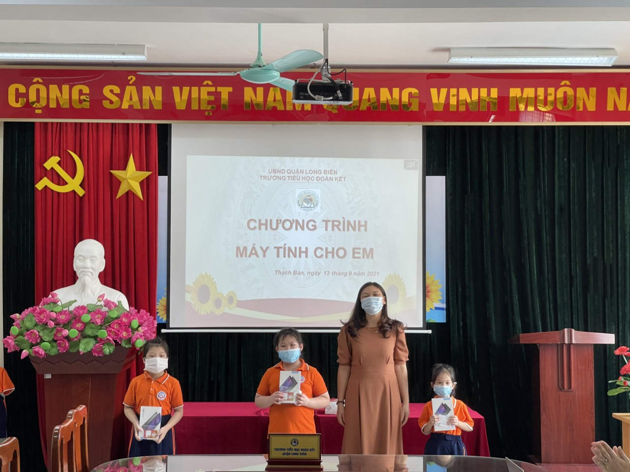 Trường Tiểu học Đoàn Kết rà soát những em học sinh có hoàn cảnh khó khăn chưa có thiết bị dạy học trực tuyến và phát động tới toàn thể cán bộ, giáo viên, nhân viên, cha mẹ học sinh, các em học sinh ủng hộ tiền mặt, thiết bị máy tính, điện thoại thông minh nhằm giúp các bạn vượt qua khó khăn hoàn thành việc học tập. Qua đợt phát động, nhà trường đã trao tặng 12 máy tính bảng, 01 điện thoại thông minh kèm theo sim 4G đảm bảo dung lượng phục vụ cho việc học tập trong vòng 1 năm. Bên cạnh đó nhà trường còn lan tỏa tình cảm, trách nhiệm với các em học sinh có hoàn cảnh khó khăn trên địa bàn quận Long Biên qua Phòng Giáo dục và Đào tạo, Quận Đoàn Long Biên.