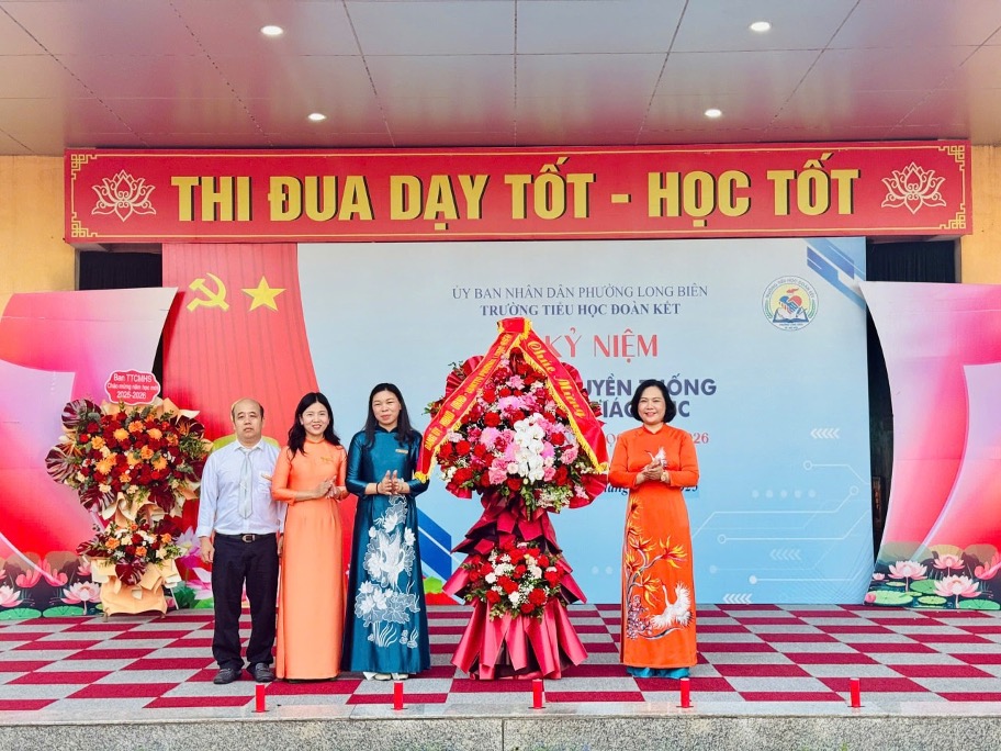 Hoà chung trong không khí tưng bừng cả nước thi đua lập thành tích chào mừng kỷ niệm 80 năm Cách mạng Tháng Tám thành công (19/8/1945-19/8/2025), Quốc Khánh nước Cộng hòa xã hội chủ nghĩa Việt Nam (2/9/1945-2/9/2025) và hưởng ứng ngày “Toàn dân đưa trẻ đến trường”; Thực hiện Kế hoạch số 74/KH-UBND ngày 27/8/2028 của Ủy ban nhân dân phường Long Biên về việc Tổ chức Lễ khai giảng tại các trường MN,TH, THCS công lập trên địa bàn phường Long Biên năm học 2025-2026; sáng ngày 5/9/2025, trong không khí hân hoan và náo nức của các em học sinh, cờ hoa được trang hoàng rực rỡ khắp các hành lang, sân trường, cùng với học sinh cả nước, thầy và trò Trường Tiểu học Đoàn Kết đã long trọng tổ chức lễ khai giảng năm học mới 2025-2026.