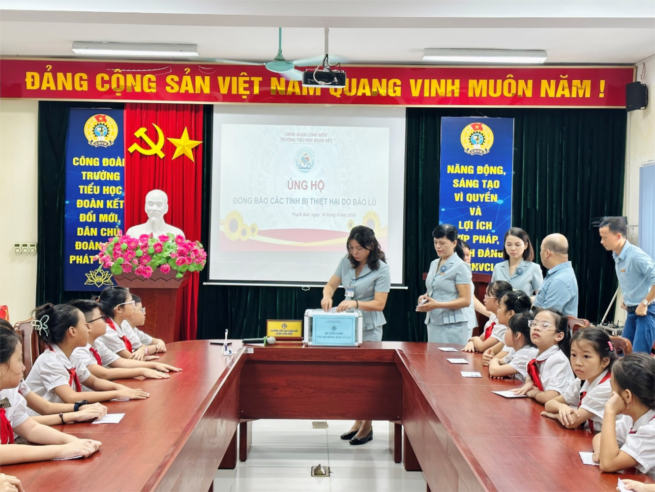 Hưởng ứng lời phát động của nhà trường đã thu hút được rất nhiều các em học sinh chung tay tham gia ủng hộ, bên cạnh đó cũng có rất nhiều các em học sinh đã “đập lợn đất” dành toàn bộ số tiền tiết kiệm được dành tặng. Sáng ngày 16/9/2024 nhà trường đã tổ chức Ủng hộ với sự tham gia của tập thể CB,GV, NV, của các bác trong Ban đại diện cha mẹ học sinh nhà trường, của các em học sinh với tổng số tiền đợt 1 thu được 145.203.000đ (Một trăm bốn mươi lăm triệu hai trăm linh ba nghìn đồng). Trong đó tập thể CB, GV, NV và ban thường trực cha mẹ học sinh nhà trường ủng hộ 22.800.000đ (Hai mươi hai triệu tám trăm nghìn đồng) các em học sinh của nhà trường 122.403000đ (Một trăm hai mươi hai triệu bốnt răm linh ba nghìn đồng)