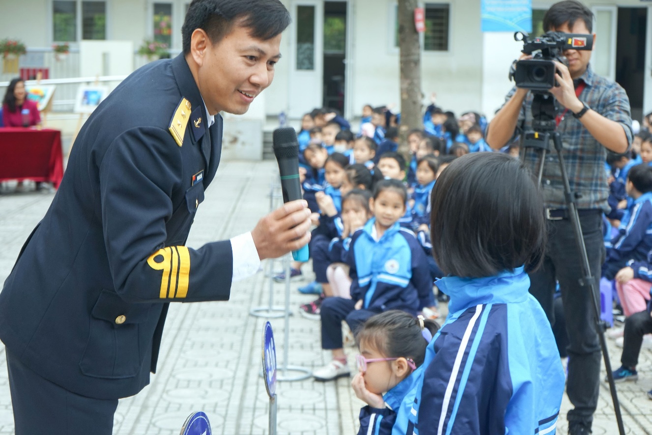 Sau tiết mục văn nghệ của thầy, trò nhà trường và Lễ chào cờ trang trọng, buổi tuyên truyền với cách đặt vấn đề nhẹ nhàng, dí dỏm, các câu hỏi rất cụ thể và có tính tương tác Trung tá Phạm Đức Cần, Chủ nhiệm Chính trị, đoàn Đo đạc biển vẽ Hải đồ và Nghiên cứu biển Bộ tham mưu Quân chủng Hải quân đã tuyên truyền, chia sẻ về những câu chuyện về chủ quyền, về biển đảo; những câu chuyện của người lính biển đang ngày đêm canh giữ vùng biển, thềm lục địa của nước ta.