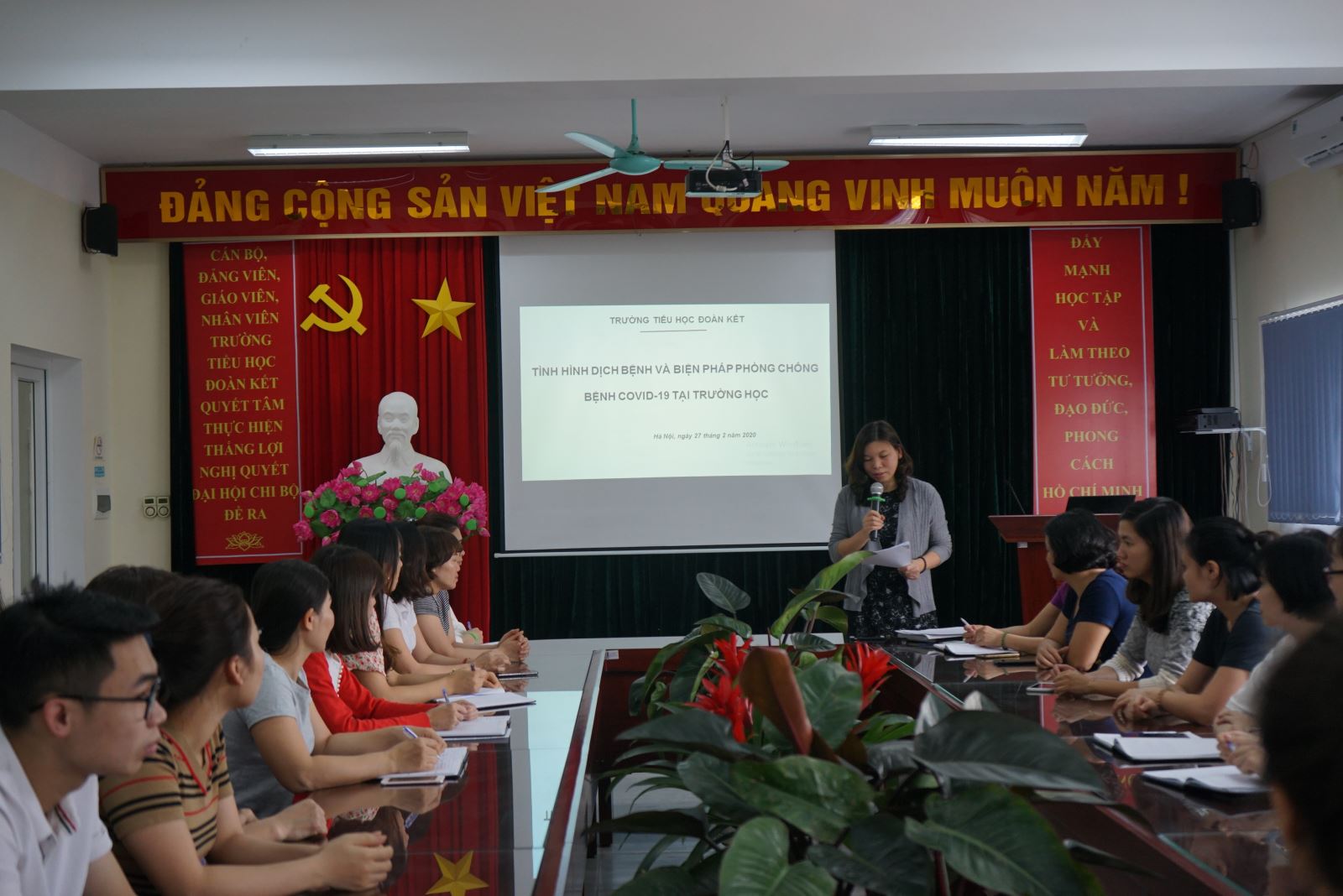 !important; Thực hiện Hướng dẫn liên ngành số 787/HDLN/YT-GDĐT-LĐTBXH ngày 21/2/2020 của Sở y tế - sở GD&ĐT - Sở Lao động thương binh và xã hội, các văn bản hướng dẫn của Trung tâm Y tế quận Long Biên, chiều ngày 27/02/2020, trường Tiểu học Đoàn Kết tổ chức Tập huấn công tác phòng, chống dịch bệnh Covid-19 và triển khai phương án đón học sinh đi học trở lại sau thời gian nghỉ học.