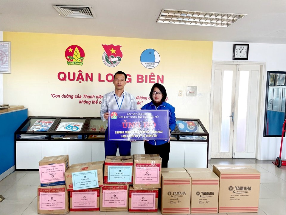 Vở, trống Đội liên đội tham gia ủng hộ