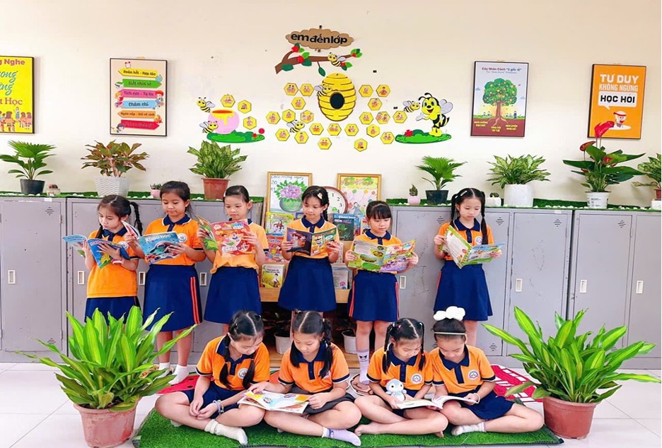 Với tiêu chí nhà trường xây dựng như: Tổng thể không gian, lớp học được bài trí gọn gàng, khoa học, sạch sẽ. Các cây xanh trang trí lớp học, hành lang đảm bảo an toàn, thân thiện, có thẩm mỹ. Góc làm việc của giáo viên sắp xếp khoa học, sạch sẽ, hệ thống dây diện được cuốn gọn gàng, đảm bảo an toàn. Cửa lớp trang trí bảng chào hỏi, tương tác (đập tay, bắt tay, vẫy chào…), trên bàn giáo viên có lịch ghi chú công việc sáng tạo, có slogan ngắn gọn để ở vị trí trung tâm bàn làm việc nuôi dưỡng cảm xúc tích cực. Bên cạnh đó lớp học có tủ sách thân thiện nhằm tạo ra môi trường để các em được thoải mái đọc sách trong giờ ra chơi hoặc khi rảnh rỗi.