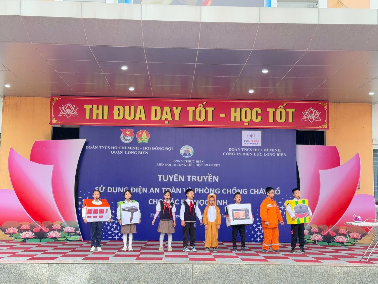 Thực hiện Công văn số 331-HD/HĐĐ ngày 25 tháng 10 năm 2024 của Hội đồng đội Thành phố Hà Nội về việc phối hợp tổ chức tuyên truyền sử dụng điện an toàn và phòng chống cháy nổ cho các em học sinh trên địa bàn Thành phố Hà Nội, được sự đồng ý của Quận Đoàn, Hội đồng Đội quận Long Biên, sáng ngày 12/9/2024, Liên đội Trường Tiểu học Đoàn Kết tổ chức tuyên truyền sử dụng điện an toàn và phòng chống cháy nổ cho các em học sinh. Đây là dịp Liên đội tuyên truyền đến các em học sinh những kiến thức về sử dụng điện an toàn, tiết kiệm, phòng chống cháy nổ.