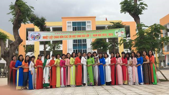 Ngay khi bước đến cổng trường, trước mắt các em là sắc đỏ rực rỡ của cờ hoa, băng rôn chào mừng với lời ca rộn ràng của bài hát: “ Ngày đầu tiên đi học” như làm các em náo nức hơn. Các em học sinh lớp 1 với đôi mắt ngỡ ngàng, lạ lẫm trong tay bố, mẹ đã có mặt từ rất sớm để nhận lớp, nhận cô. Những cử chỉ âm yếm, thân thiện của các cô đã xua tan bớt những lo lắng trên gương mặt các em. Mỗi lớp học đều đã được các cô giáo trang trí đẹp mắt, tạo được ấn tượng tốt đối với phụ huynh và các em học sinh. Các em nhanh chóng hòa mình vào những trò chơi, những bài hát để giao lưu và làm quen với những người bạn mới.