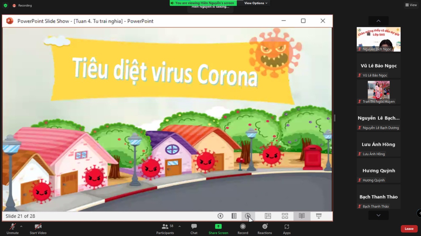Tiết học diễn ra thật sôi nổi. Việc áp dụng công nghệ thông tin đã thu hẹp khoảng cách giữa cô và trò trong thời gian học qua zoom. Qua tiết chuyên đề của cô Hiền, các thành viên trong tổ chuyên môn 4,5 đã học hỏi được rất nhiều về áp dụng công nghệ thông tin trong dạy học. Chúc cô và trò lớp 5A5 sẽ có thêm nhiều tiết học lí thú và đạt được nhiều thành tích trong năm học này.