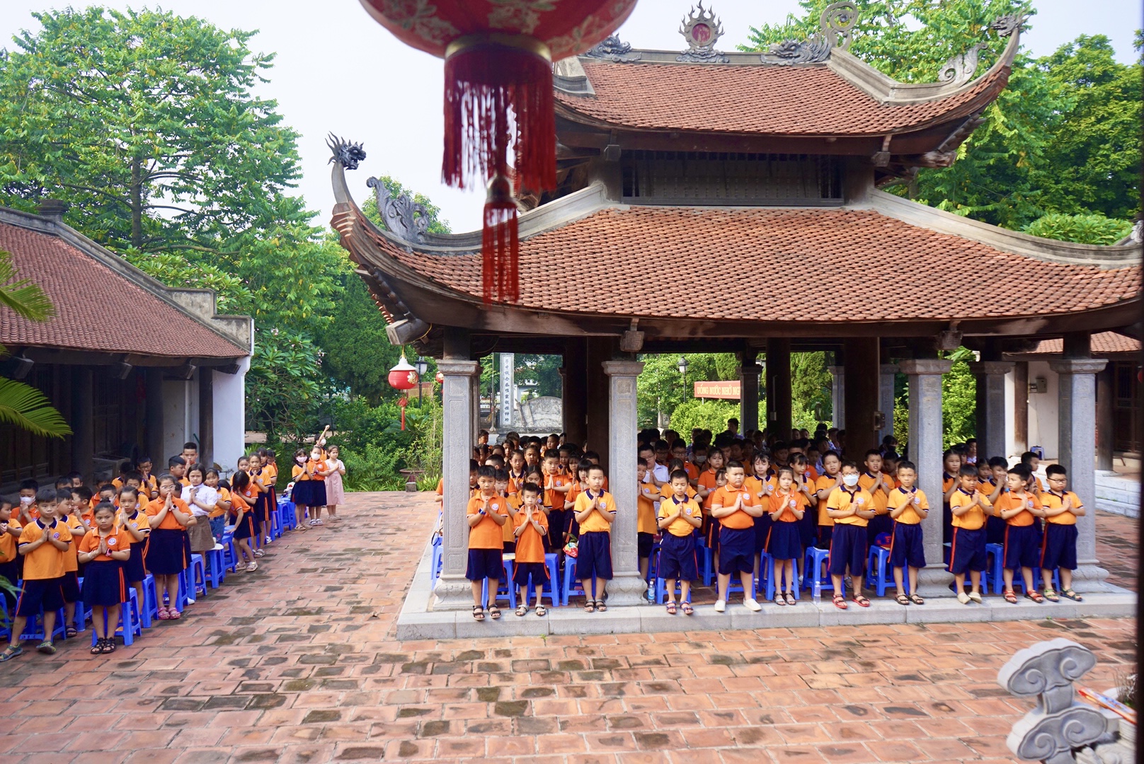 Tập thể lớp 3A4 tham quan đình Bắc Biên