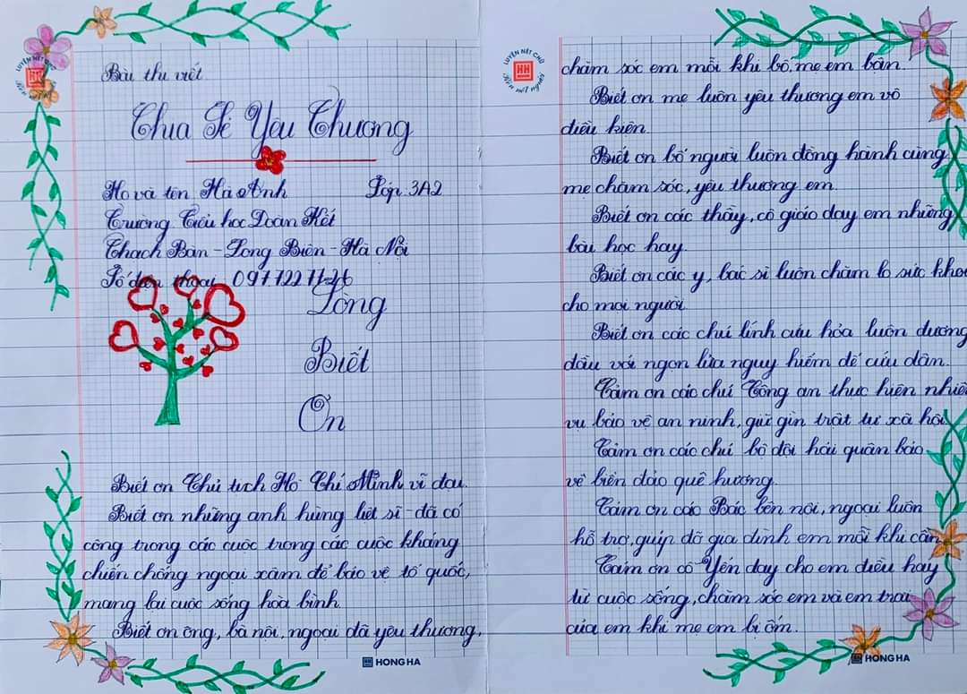 Bài viết về lòng biết ơn với cách quan sát tinh tế của em Hà Chi lớp 3A3