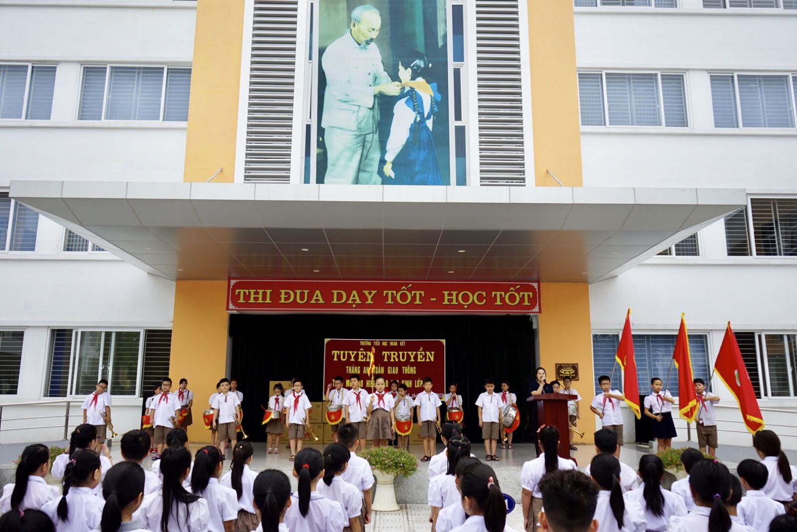 Thực hiện kế hoạch công tác tháng 9, sáng ngày 9/9/2019, trường Tiểu học Đoàn Kết tổ chức phát động “Tháng an toàn giao thông” tới tập thể cán bộ, giáo viên, nhân viên và hơn một nghìn học sinh toàn trường.