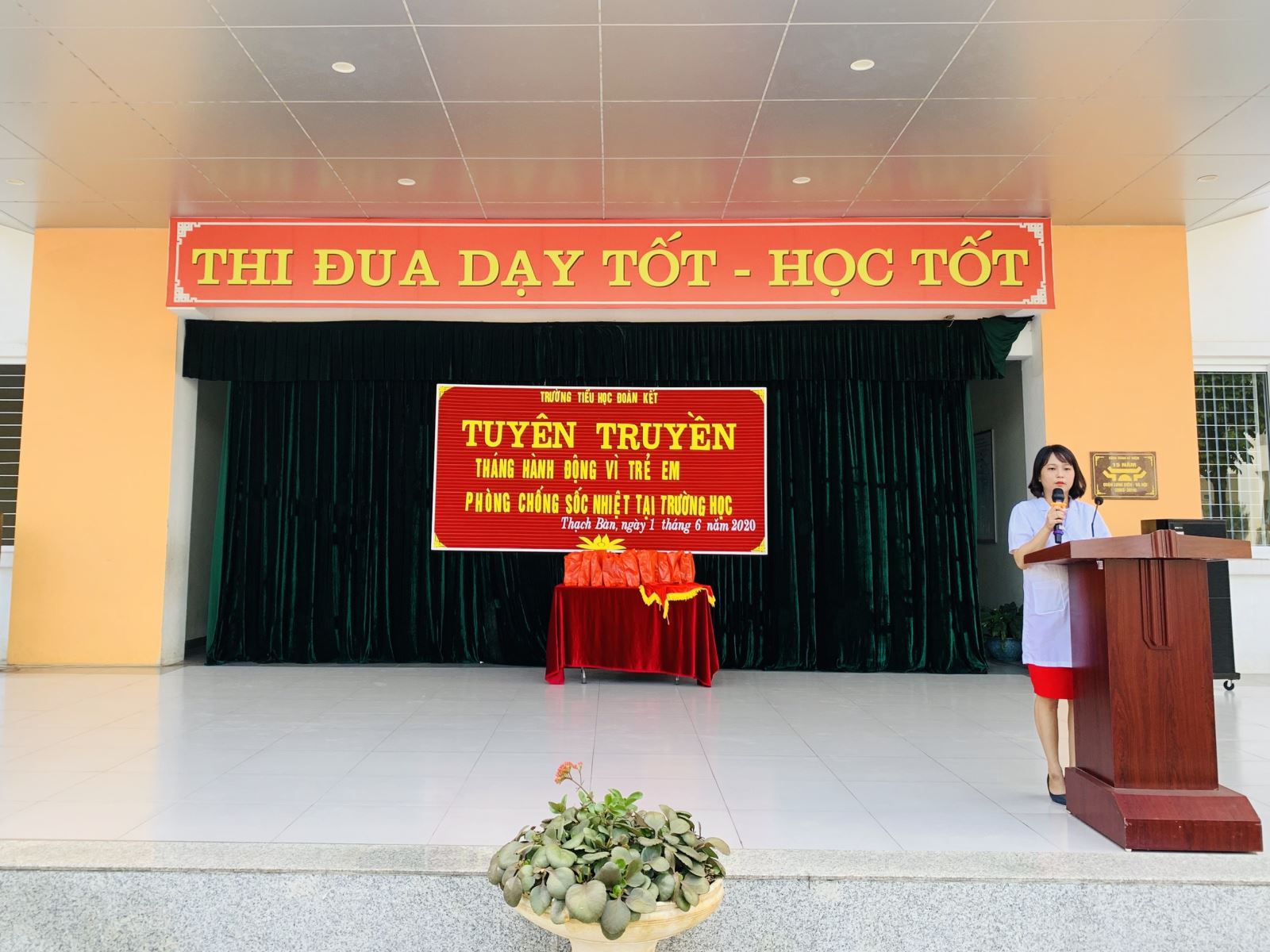 !important; Cũng trong buổi sinh hoạt dưới cờ, cô Nguyễn Vân Anh – nhân viên y tế nhà trường có bài tuyên truyền về “phòng chống sốc nhiệt” cho học sinh toàn trường. Trong thời điểm mùa hè, nắng nóng xảy ra trên địa bàn Hà Nội ảnh hưởng đến sức khỏe con người, đặc biệt là học sinh.