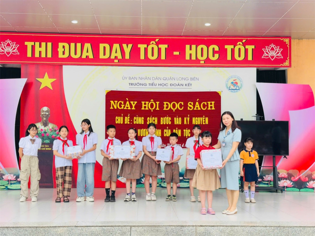 Thực hiện nhiệm vụ năm học 2024-2025, Trường Tiểu học Đoàn Kết tổ chức Ngày hội đọc sách với chủ đề “Cùng sách bước vào kỉ nguyên vươn mình của dân tộc” từ ngày 04/4/2025 đến ngày 21/4/2025 tới tập thể cán bộ, giáo viên, nhân viên, học sinh nhà trường. Ngày hội đọc sách có tiết mục văn nghệ chào mừng do tập thể lớp 3A3 với bài hát múa “Xinh tươi Việt Nam” đầy màu sắc và ấn tượng được toàn trường hưởng ứng, thưởng lãm. Tiếp đến là phần thi giới thiệu sách trực tuyến của các em học sinh khối 5.