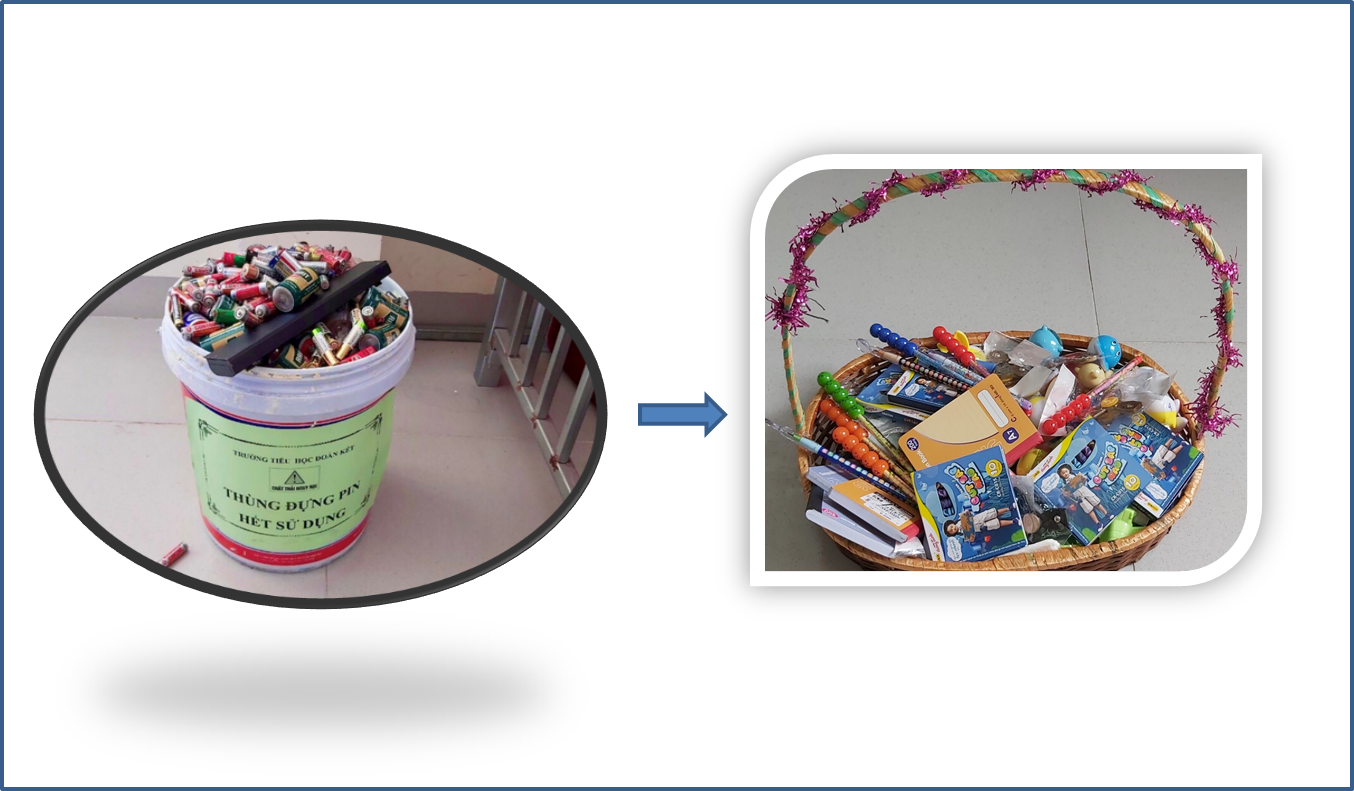!important; Tại trường Tiểu học Đoàn kết, nhiều học sinh rất thích thú bởi với 15 quả pin cũ các em đã đổi được 1 đồ dùng học tập mình yêu thích như: chiếc bút chì, cục tẩy, quyển sổ tay nhỏ, hộp màu vẽ, …. Và khi gom được 50 quả pin, các em sẽ được nhận được giấy chứng nhận “Chiến sỹ bảo vệ môi trường”. Chính vì thế, hằng ngày thùng đựng pin hết sử dụng của Liên đội lại có thêm những viên pin cũ, cuốn sổ nhận pin hết sử dụng ngày càng dầy thêm, số tên ghi chps những học sinh tham gia mô hình ngày dài thêm. Sau hơn ba tháng triển khai mô hình, số lượng pin gom nhặt đã lên đến hàng nghìn quả. Toàn bộ số pin hết sử dụng này đều do các bạn học sinh của nhà trường đã gom nhặt từ gia đình, xin lại của hàng xóm, cơ quan của bố mẹ, từ các hội trường ở địa phương nơi các em sinh sống. Số pin thải này sẽ được gom lại và phối hợp với Trung tâm tái chế Việt Nam tiêu hủy theo đúng qui định.