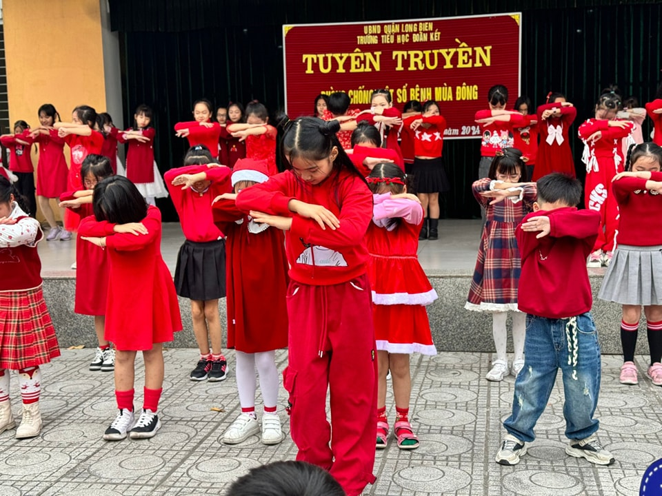 Trường TH Đoàn Kết tham gia Phát động cao điểm đợt ra quân tuyên truyền, tổng vệ sinh môi trường phòng chống dịch bệnh