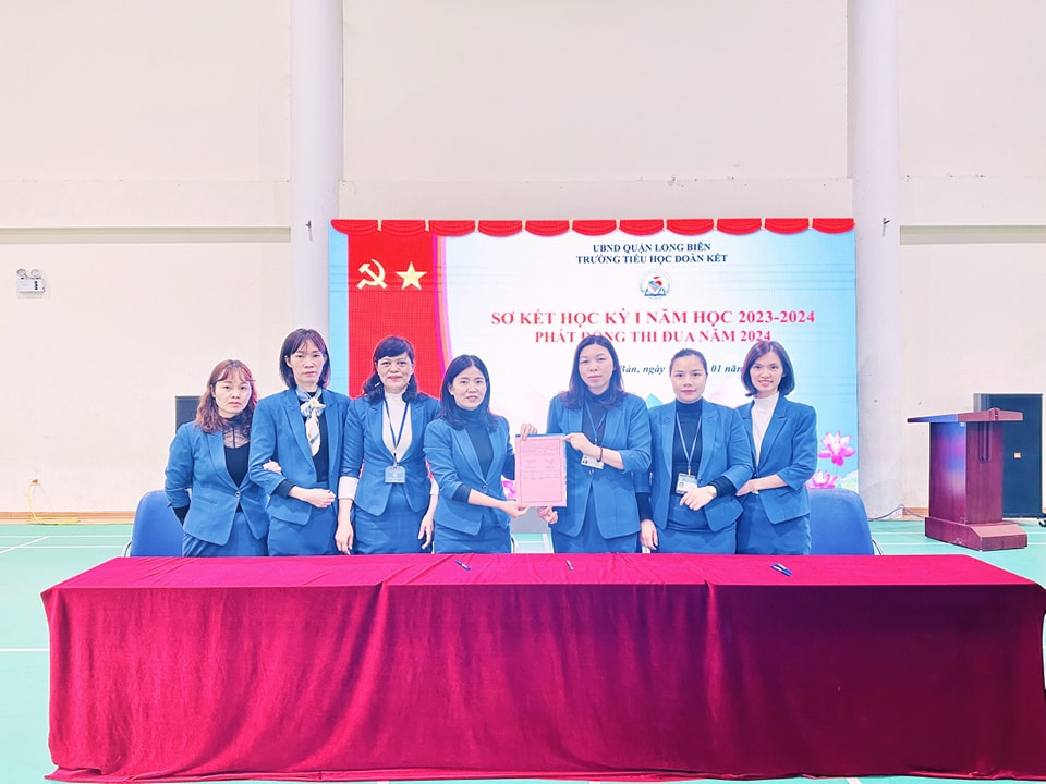 Trường Tiểu học Đoàn Kết tổ chức Sơ kết học kỳ I năm học 2023-2024, phát động, ký giao ước thi đua năm 2024.