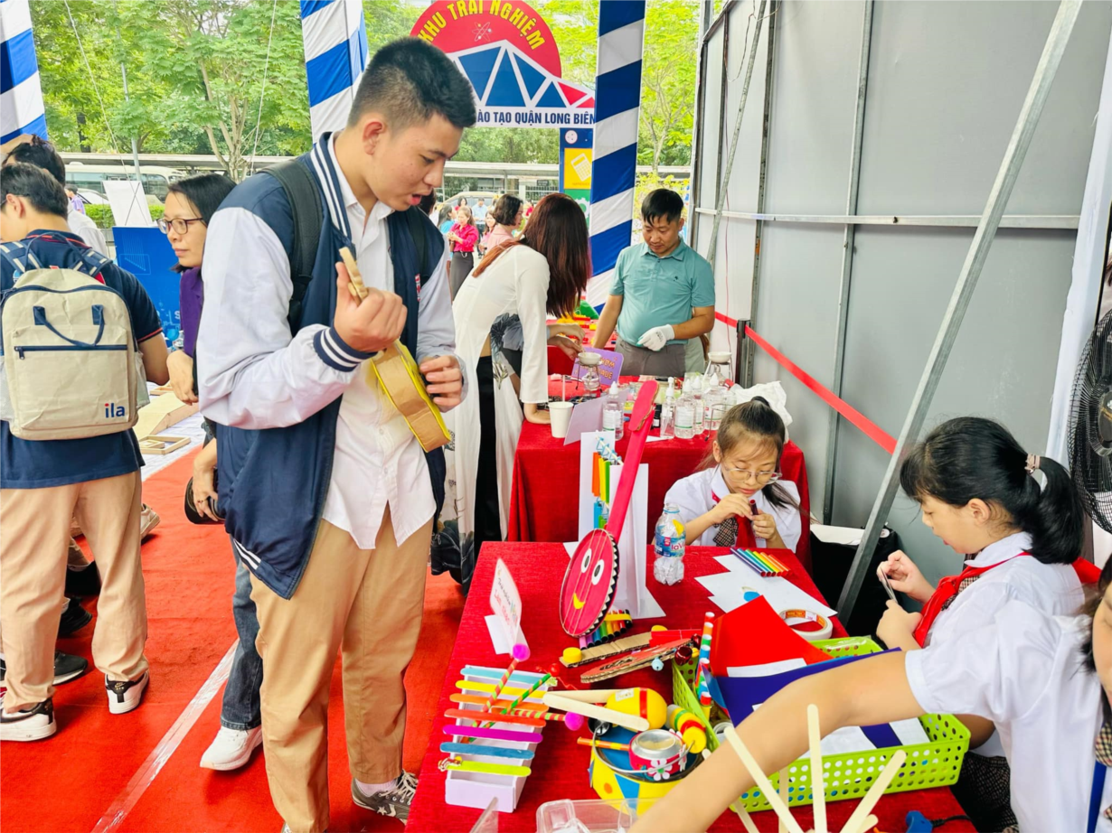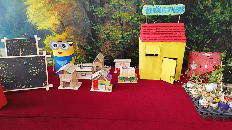 Thiếu nhi Liên đội trường Tiểu học Đoàn Kết trưng bày sản phẩm tái chế, công nghệ tại ngày Hội YOUTH FEST LONG BIEN 2023