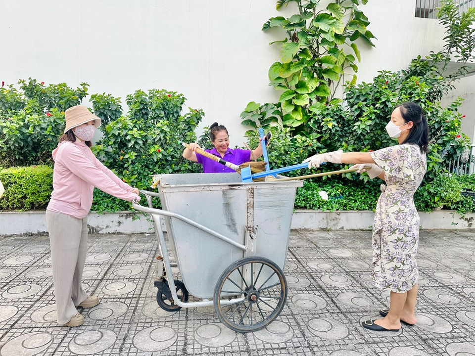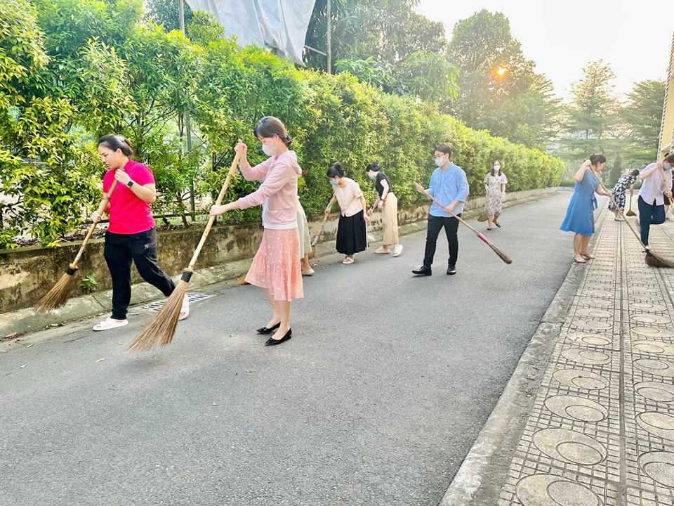 Tập thể cán bộ, giáo viên, nhân viên, CMHS cùng tham gia lao động, vệ sinh môi trường khuôn viên nhà trường trước dịp nghỉ Lễ