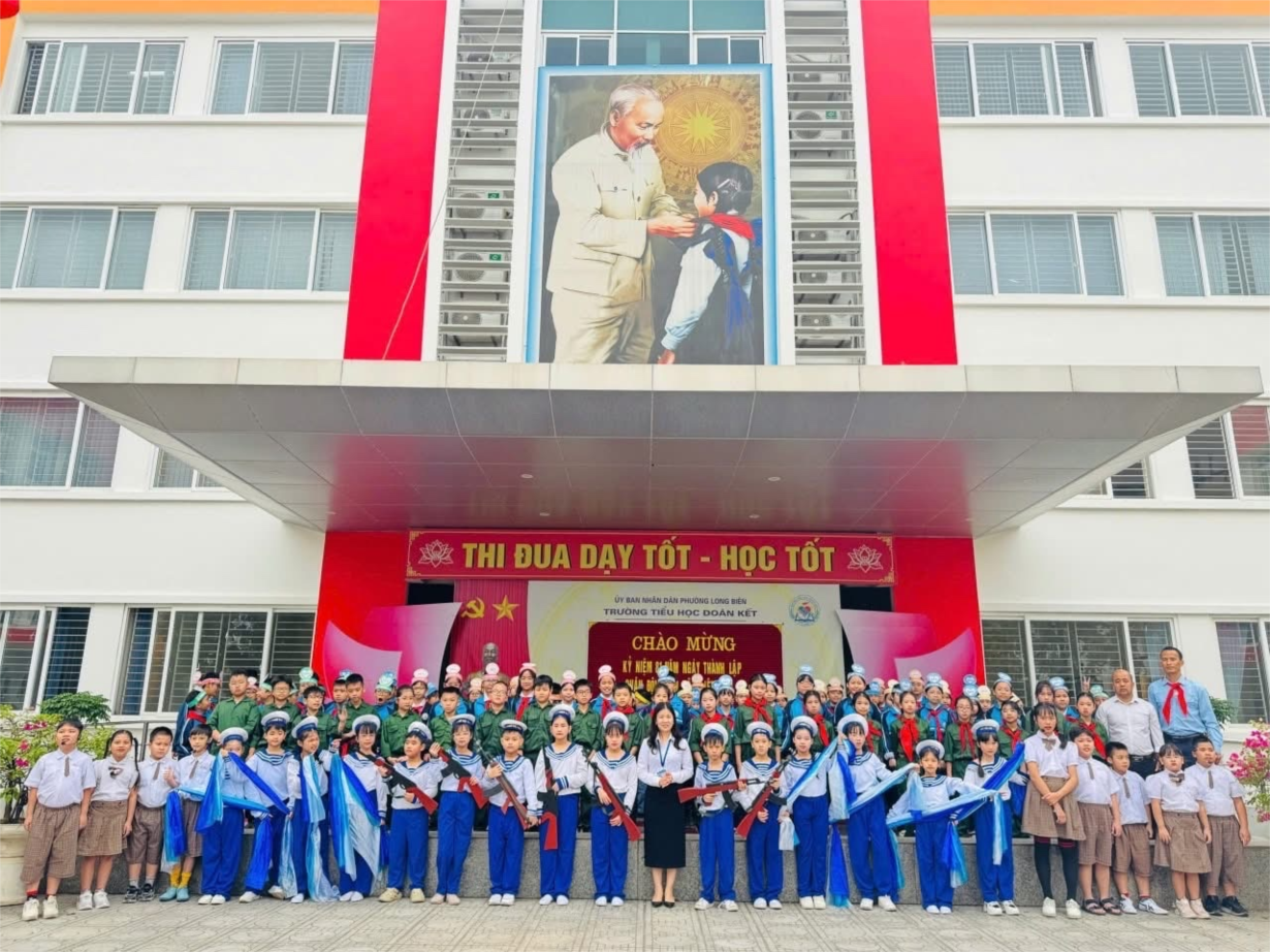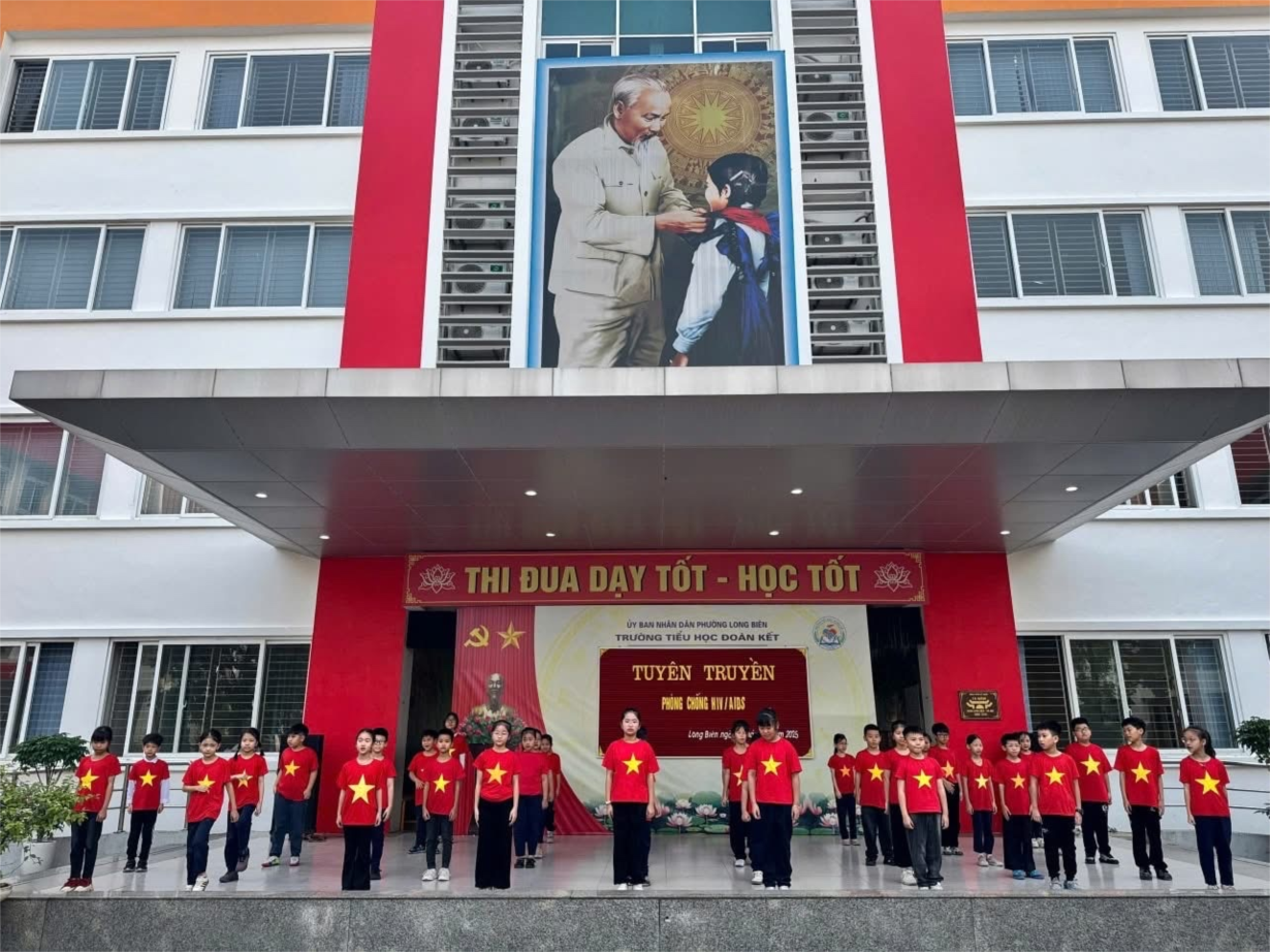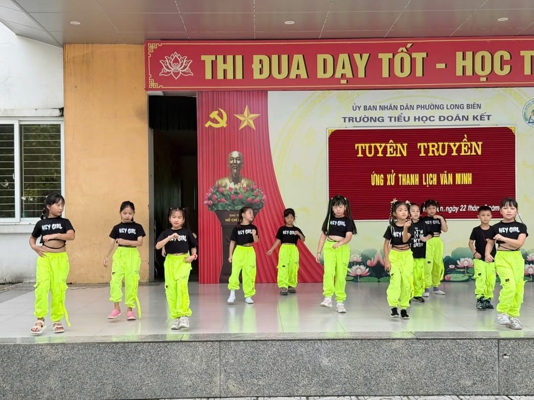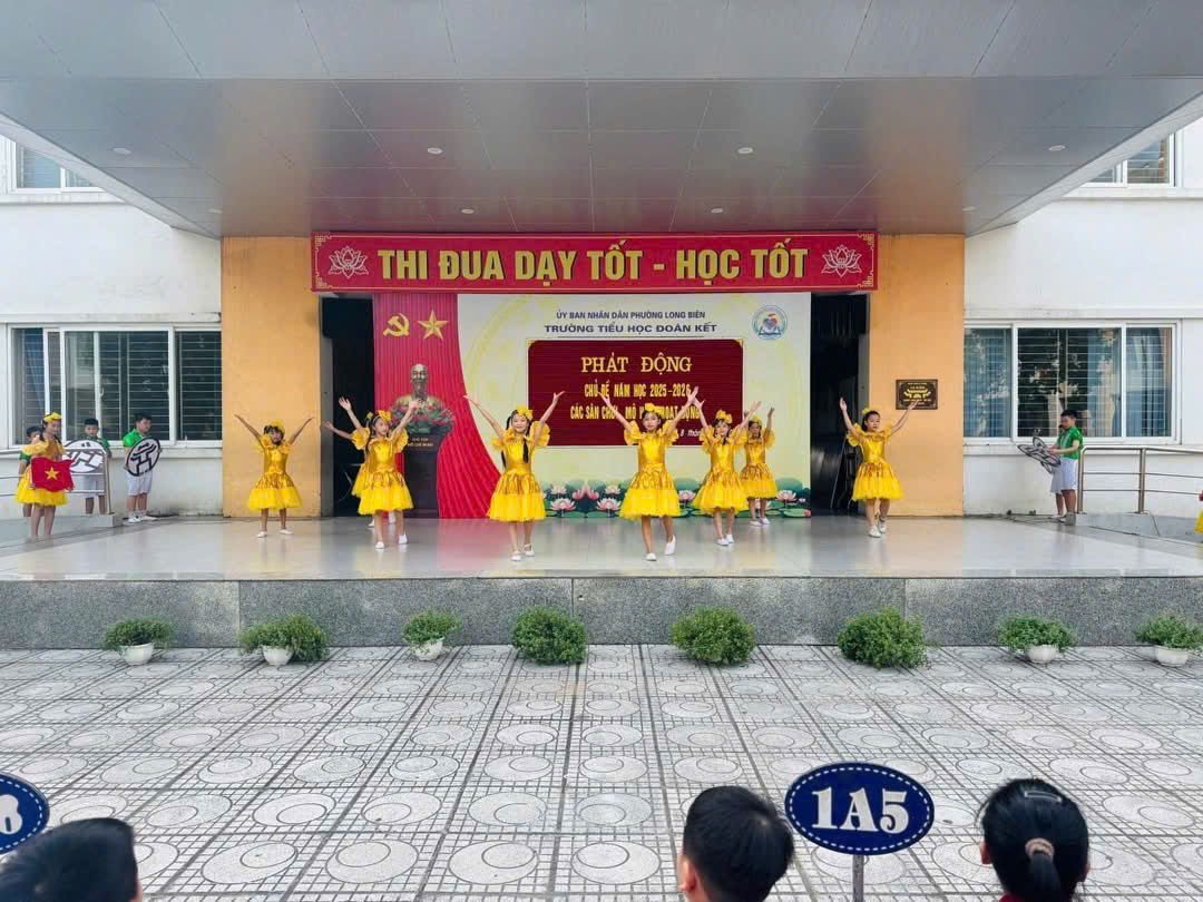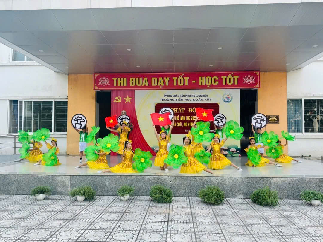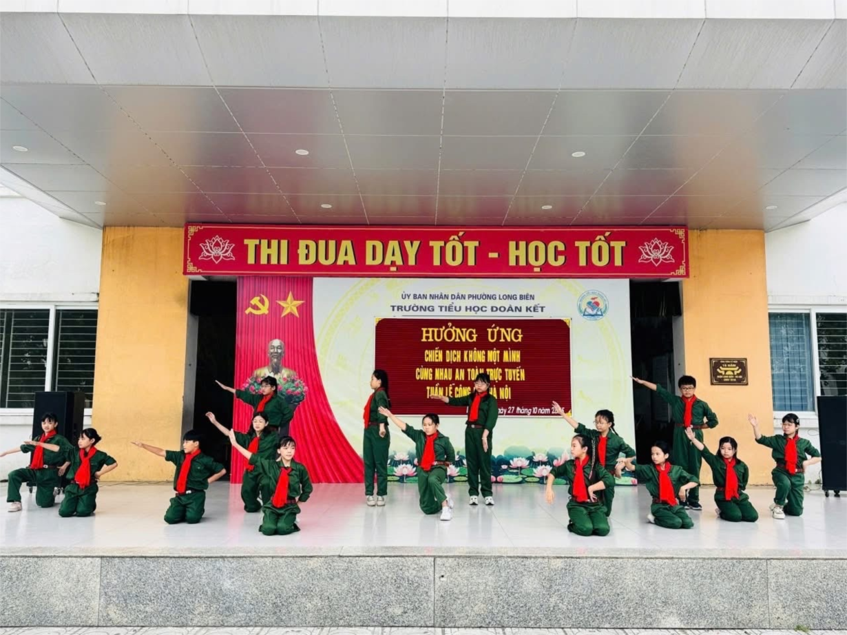 Học sinh nhà trường chào mừng Đại hội MTTQ phường Long Biên