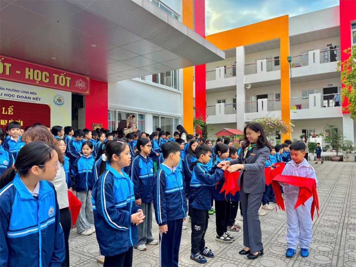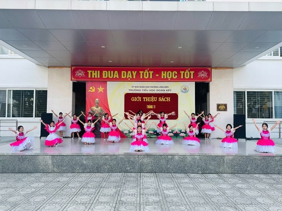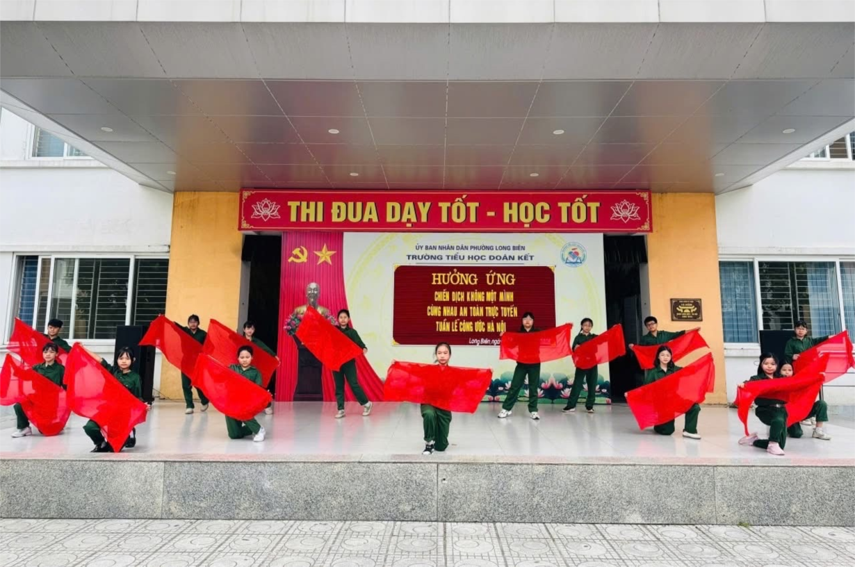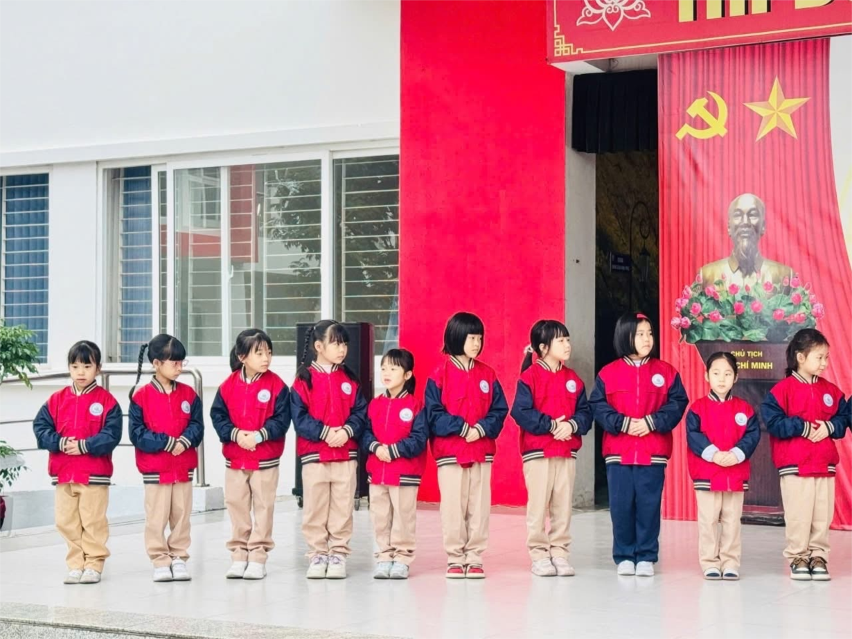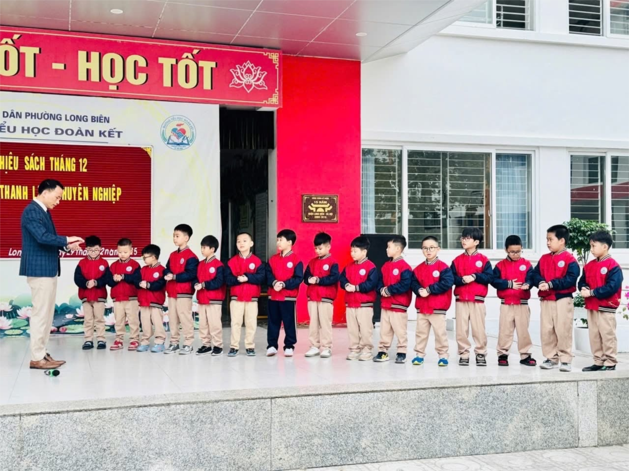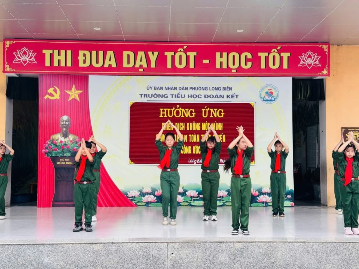 Học sinh nhà trường chào mừng Đại hội MTTQ phường Long Biên