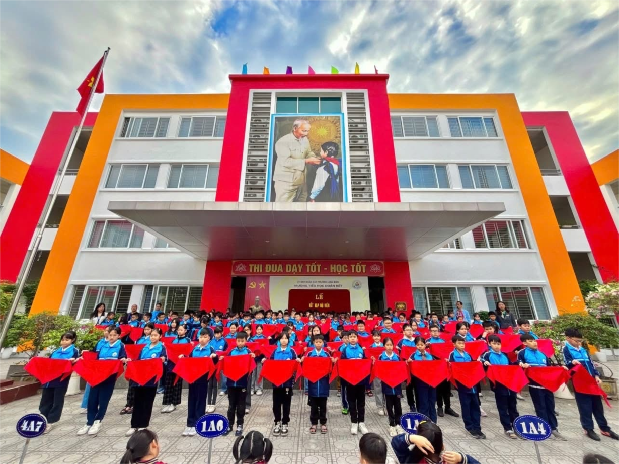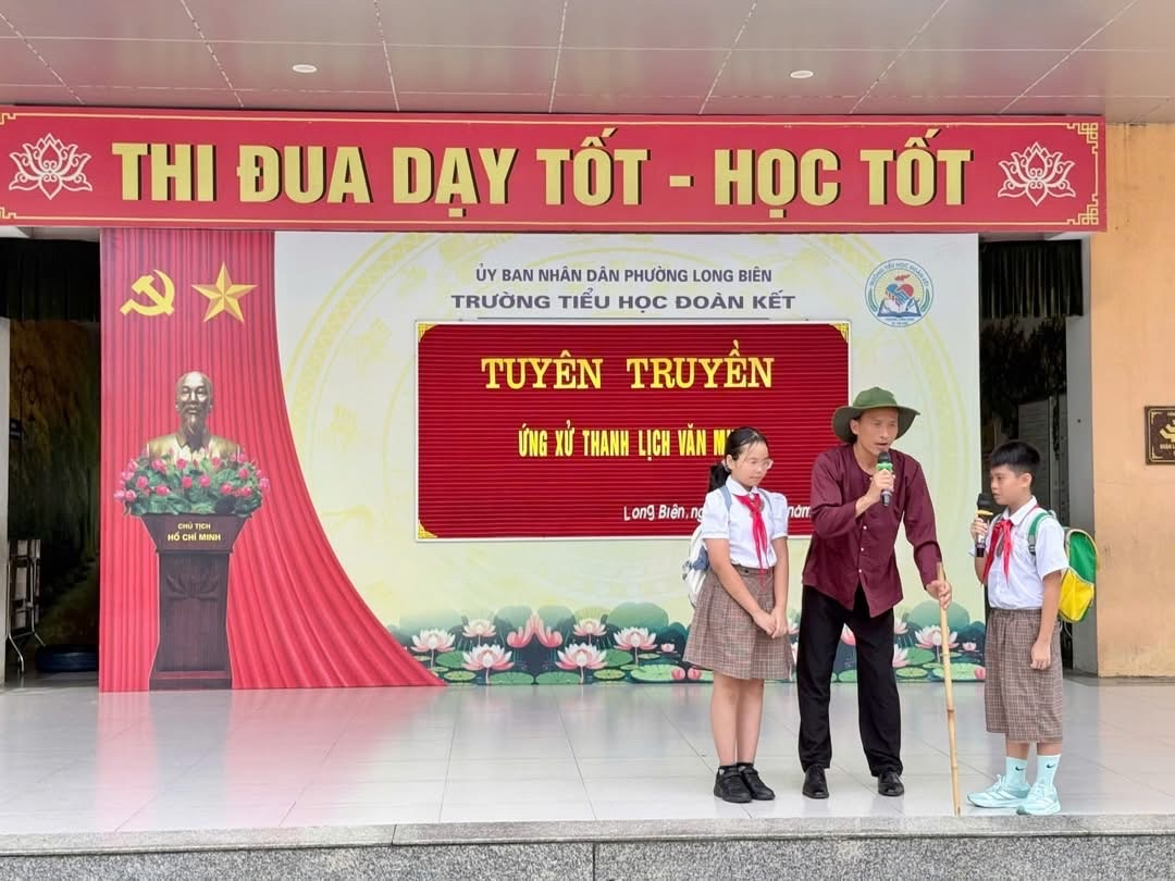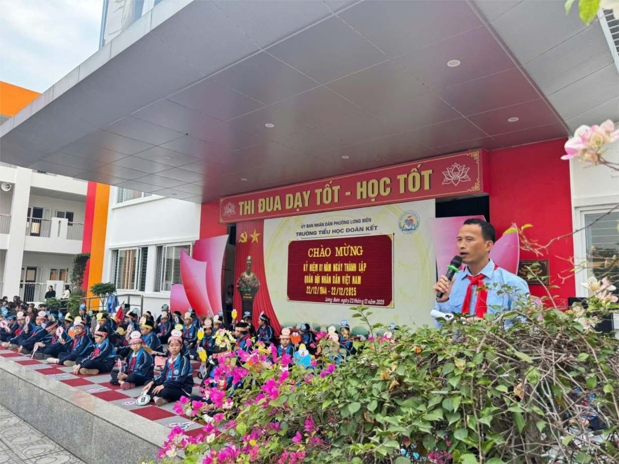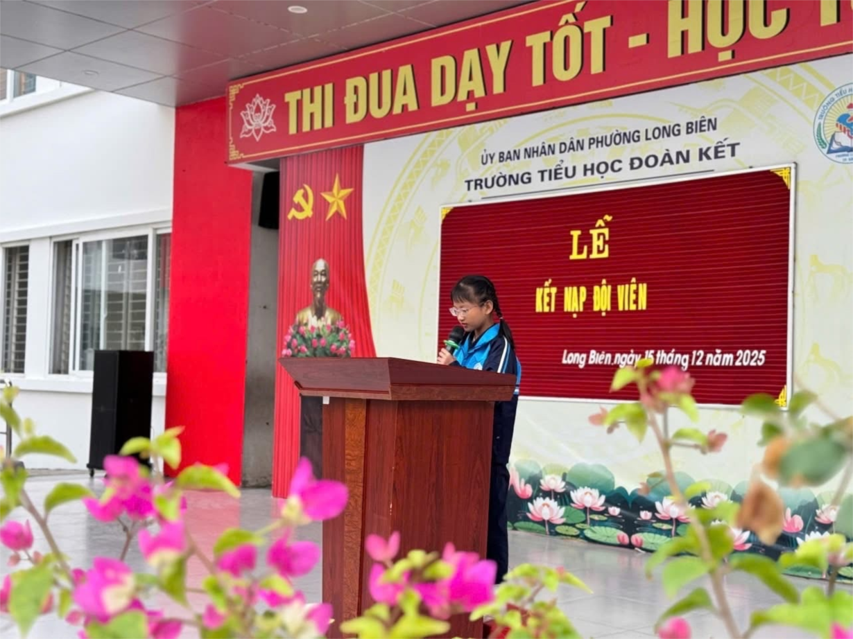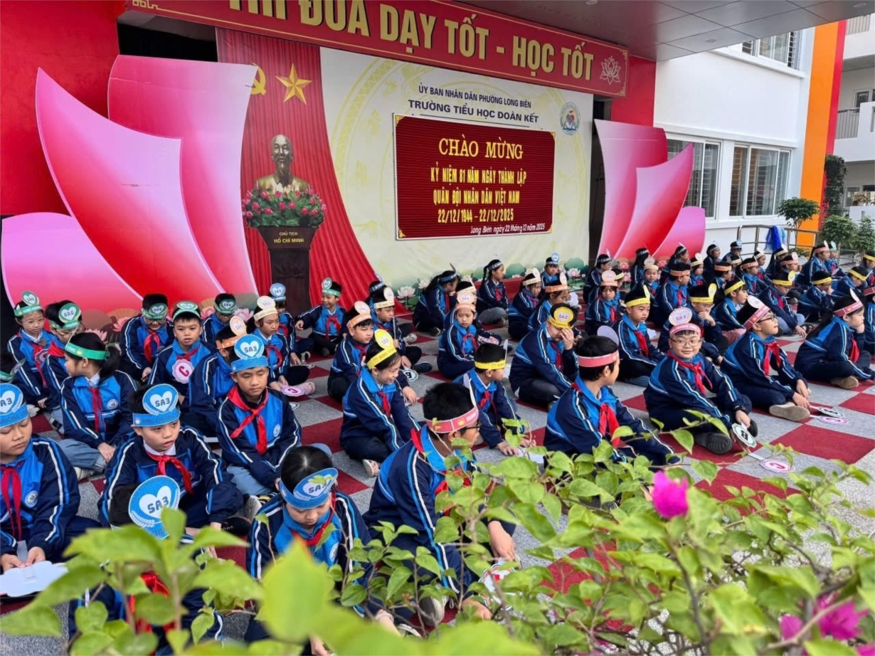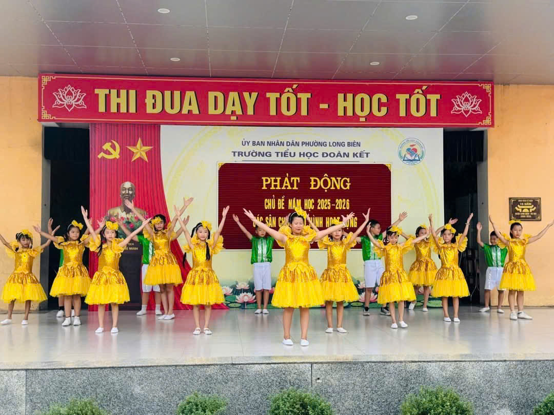 Học sinh nhà trường chào mừng Đại hội MTTQ phường Long Biên