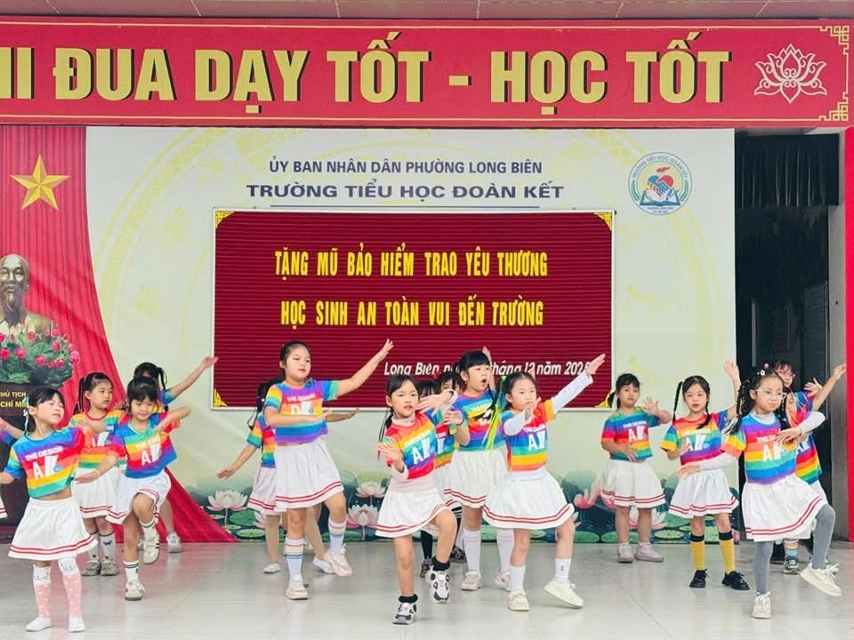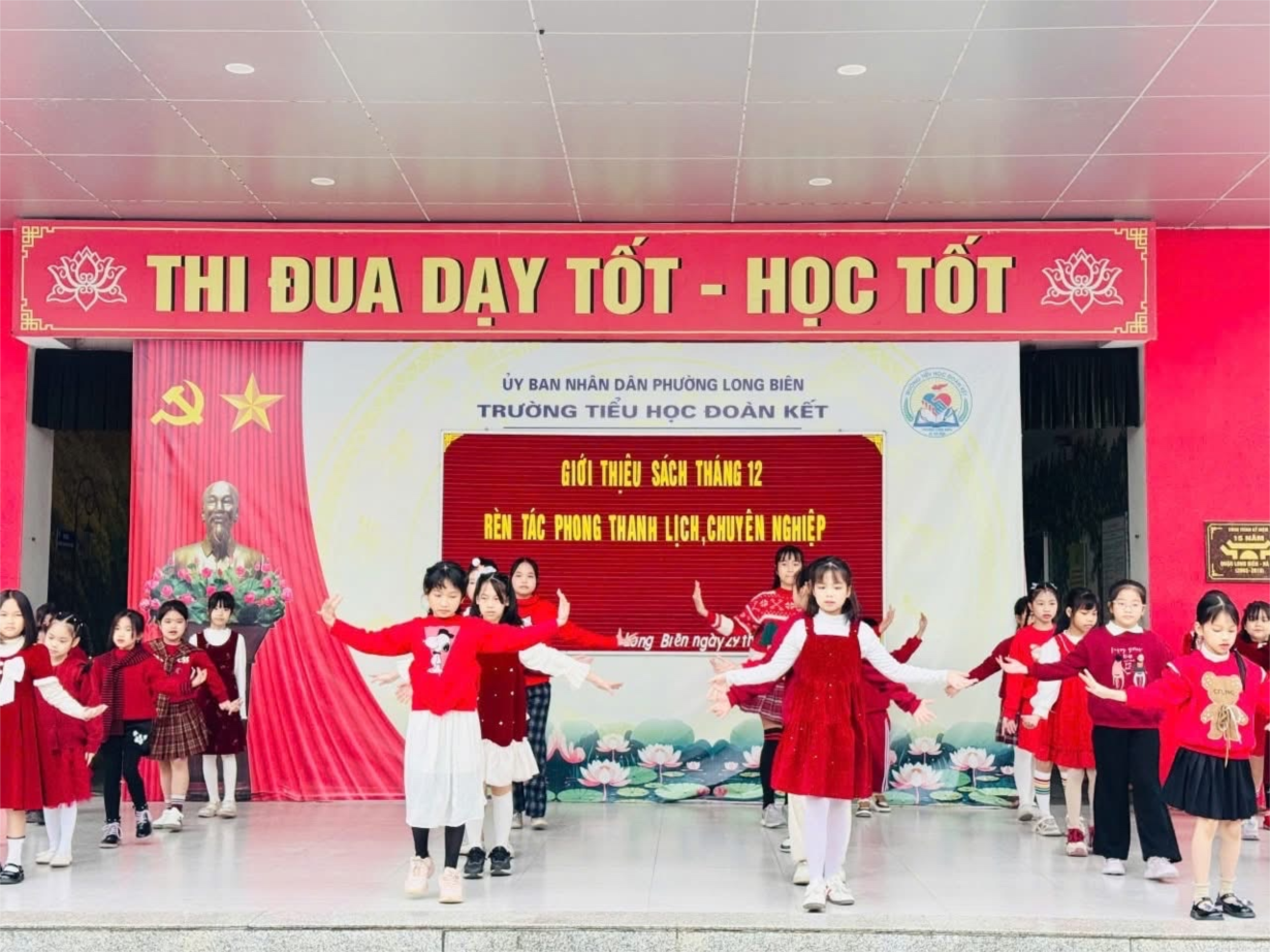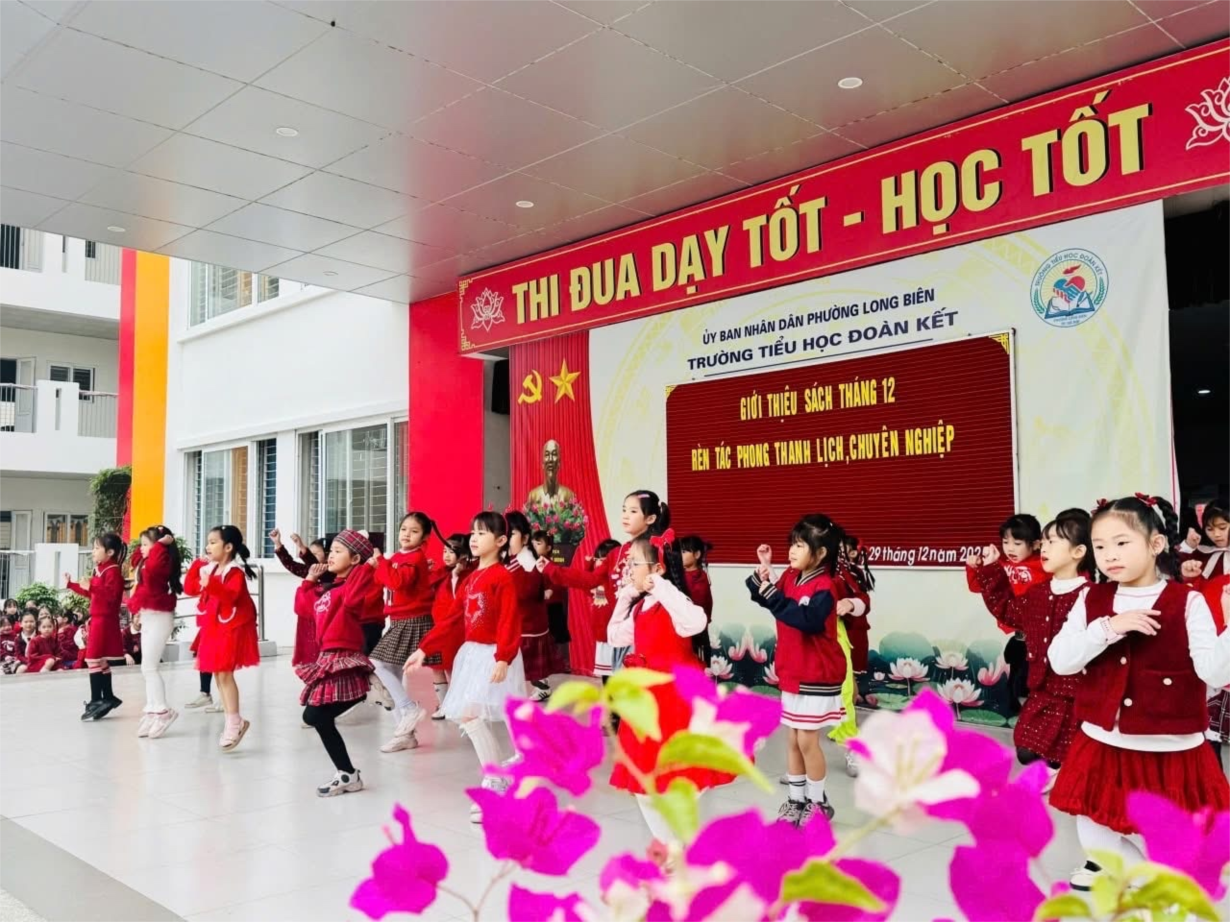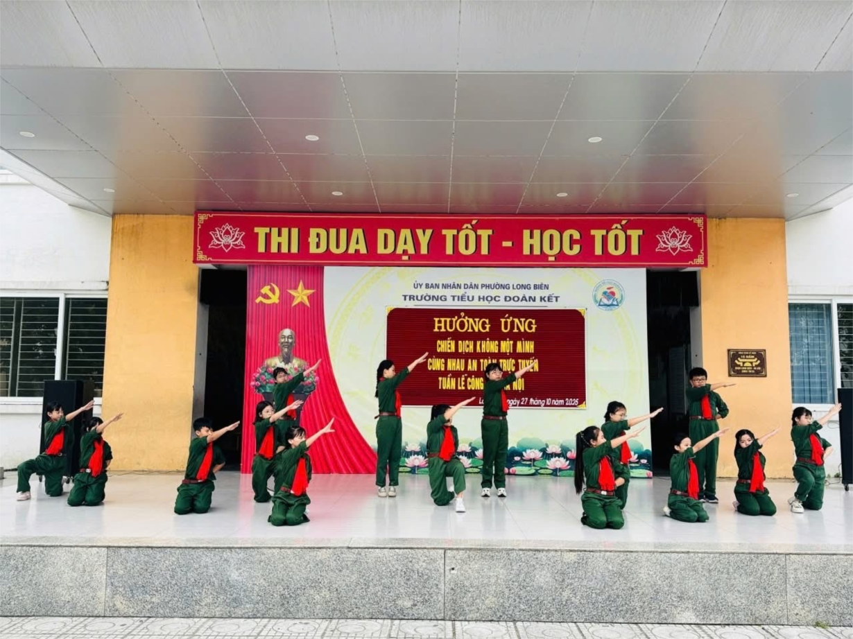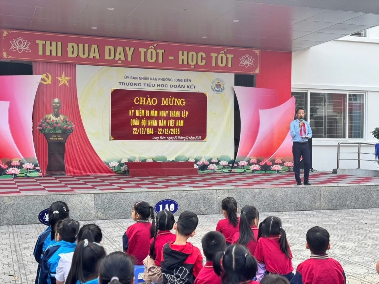 Học sinh nhà trường chào mừng Đại hội MTTQ phường Long Biên