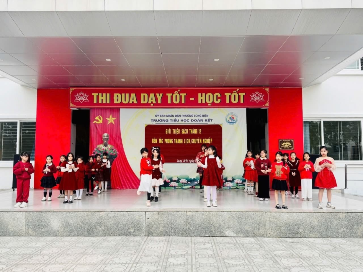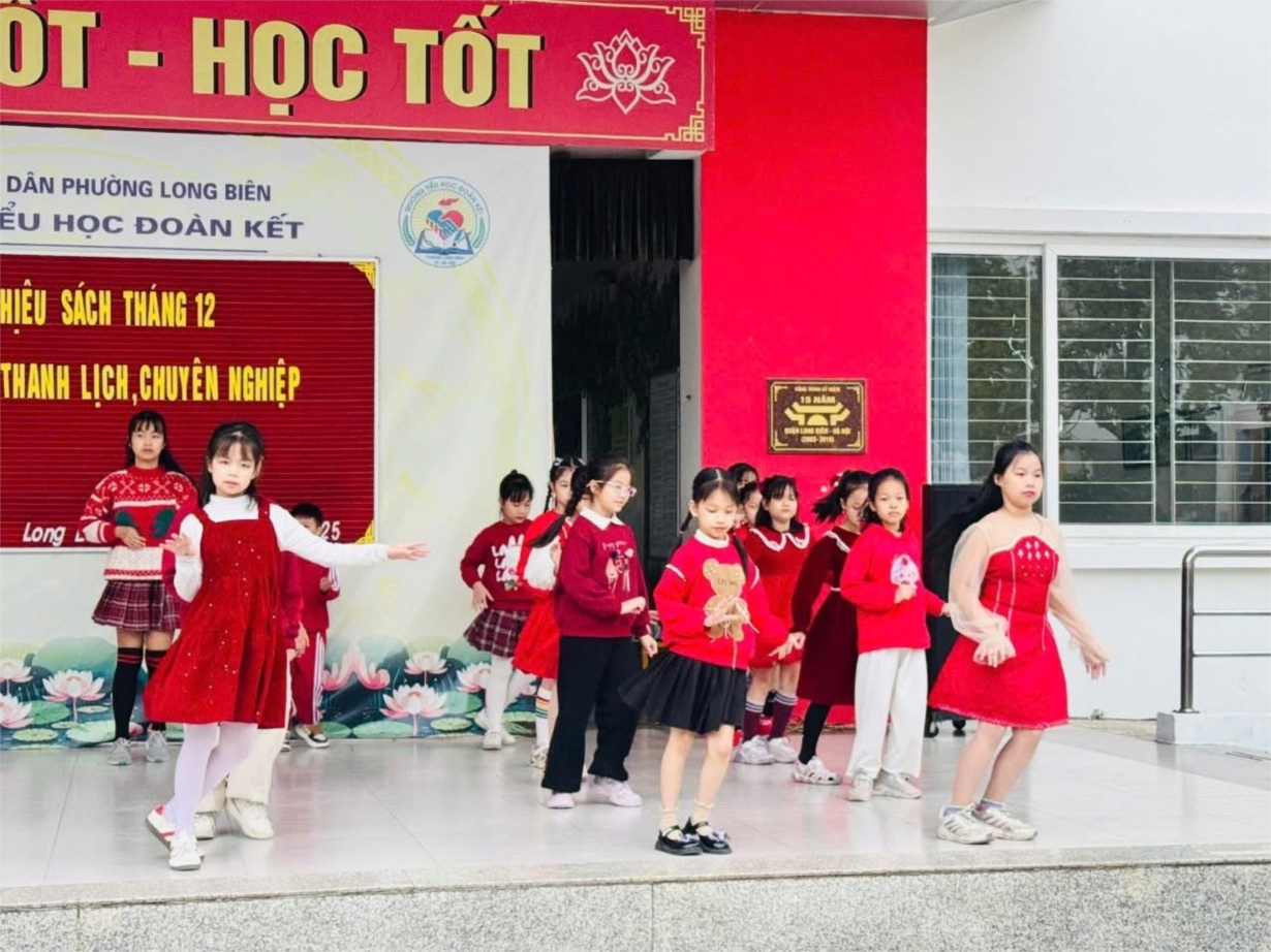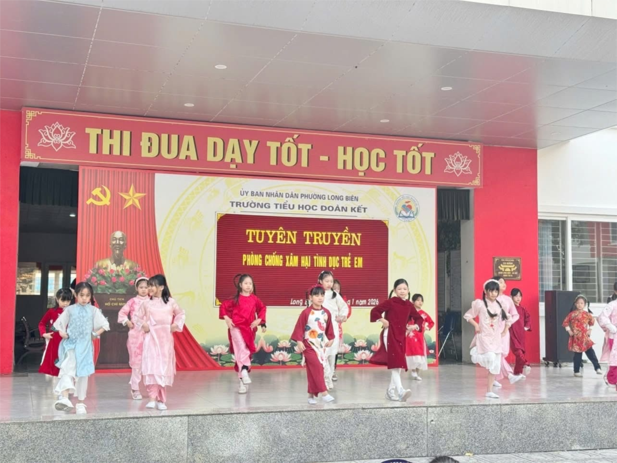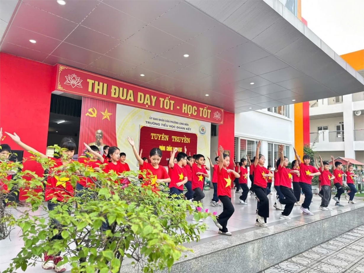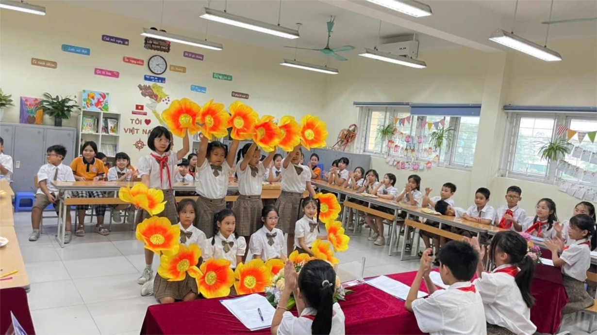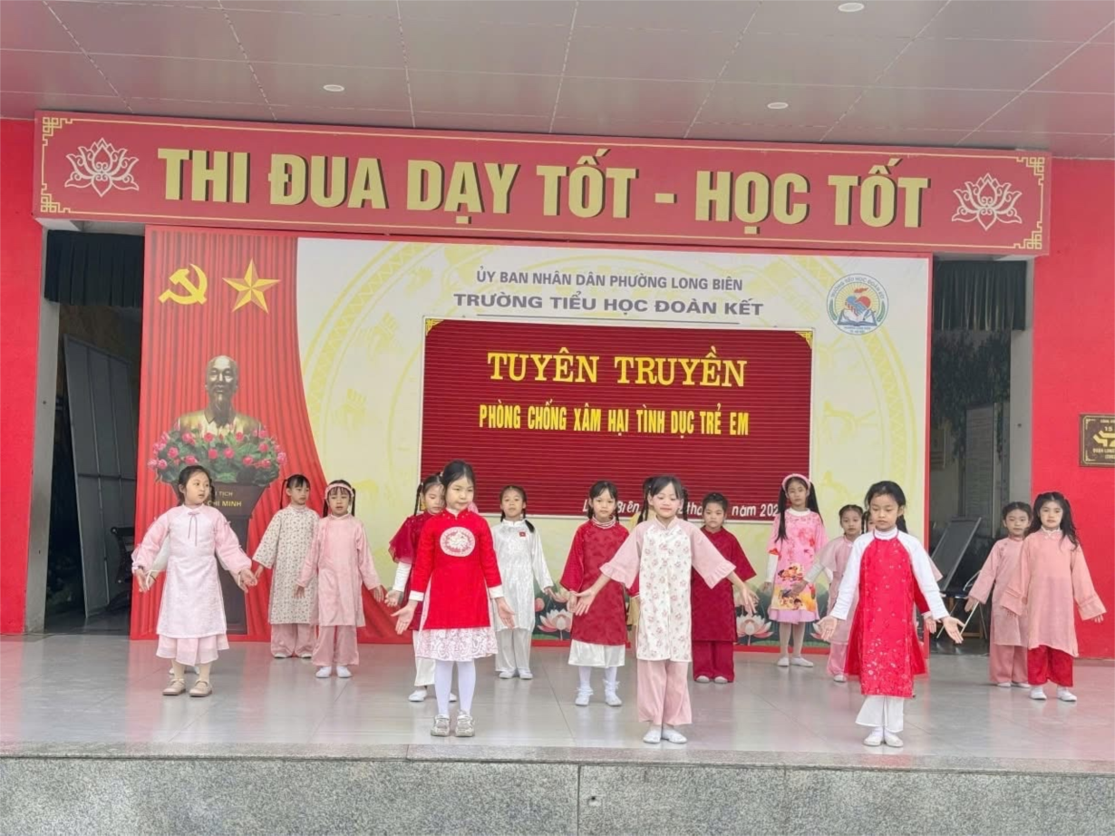 Học sinh nhà trường chào mừng Đại hội MTTQ phường Long Biên