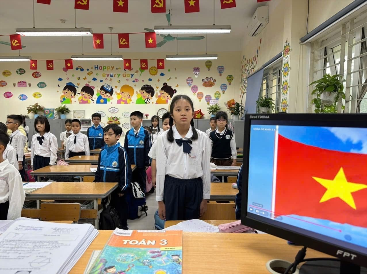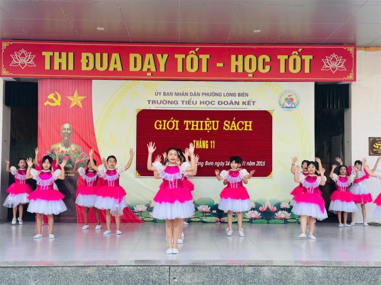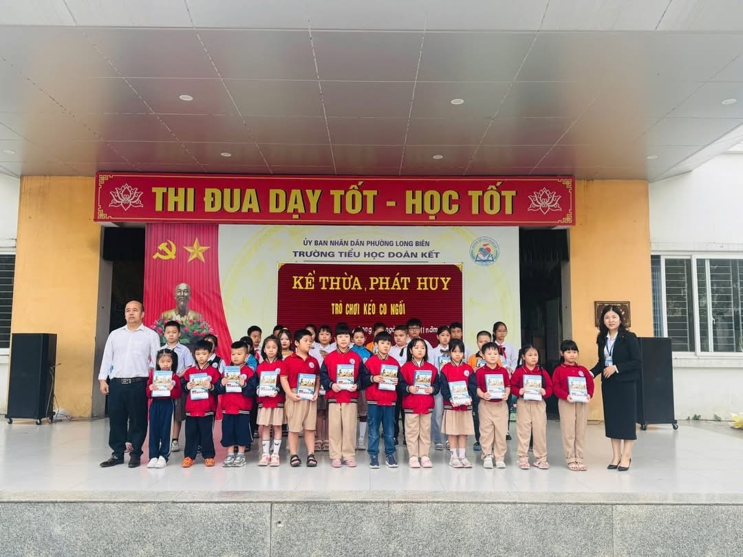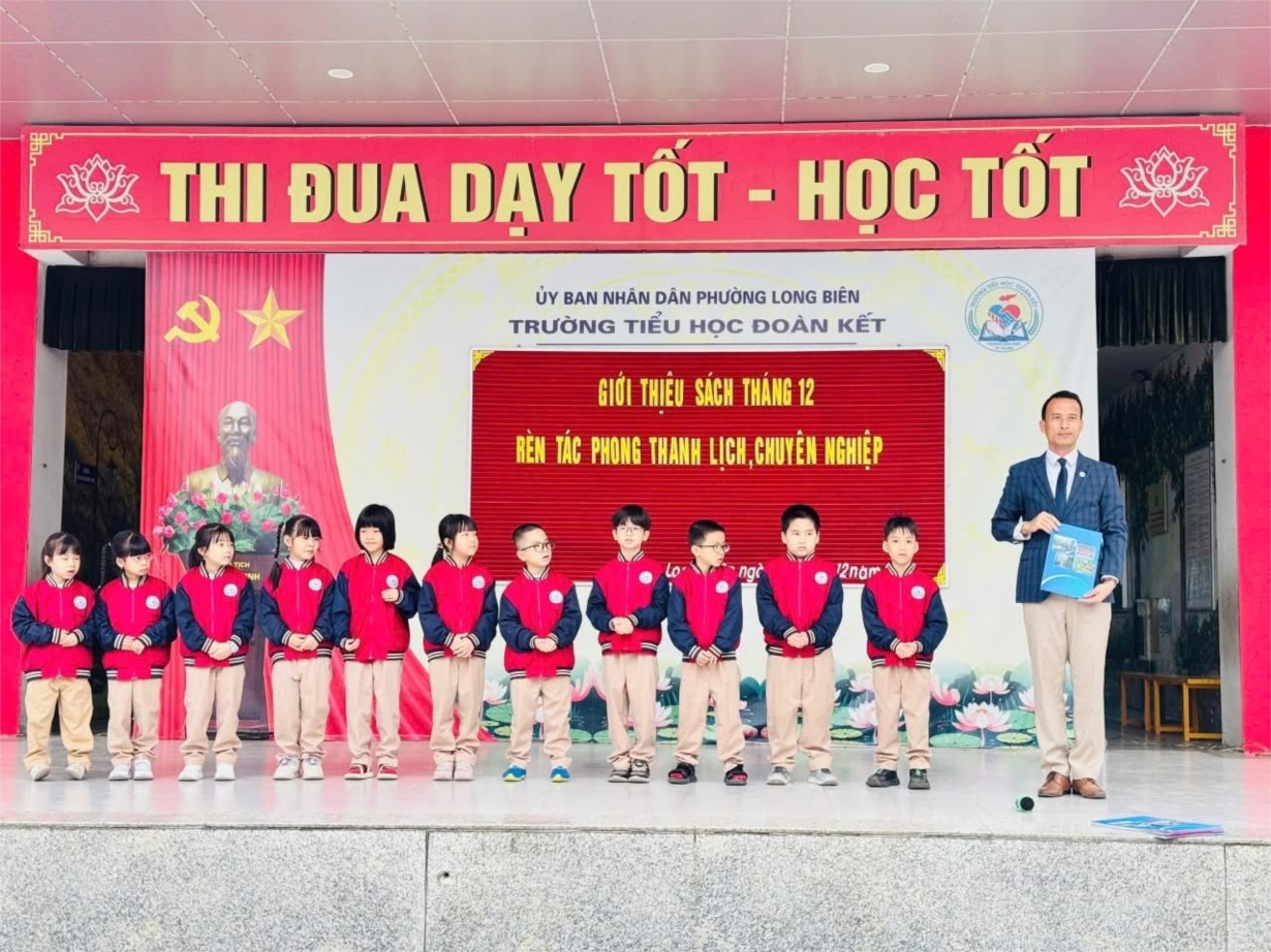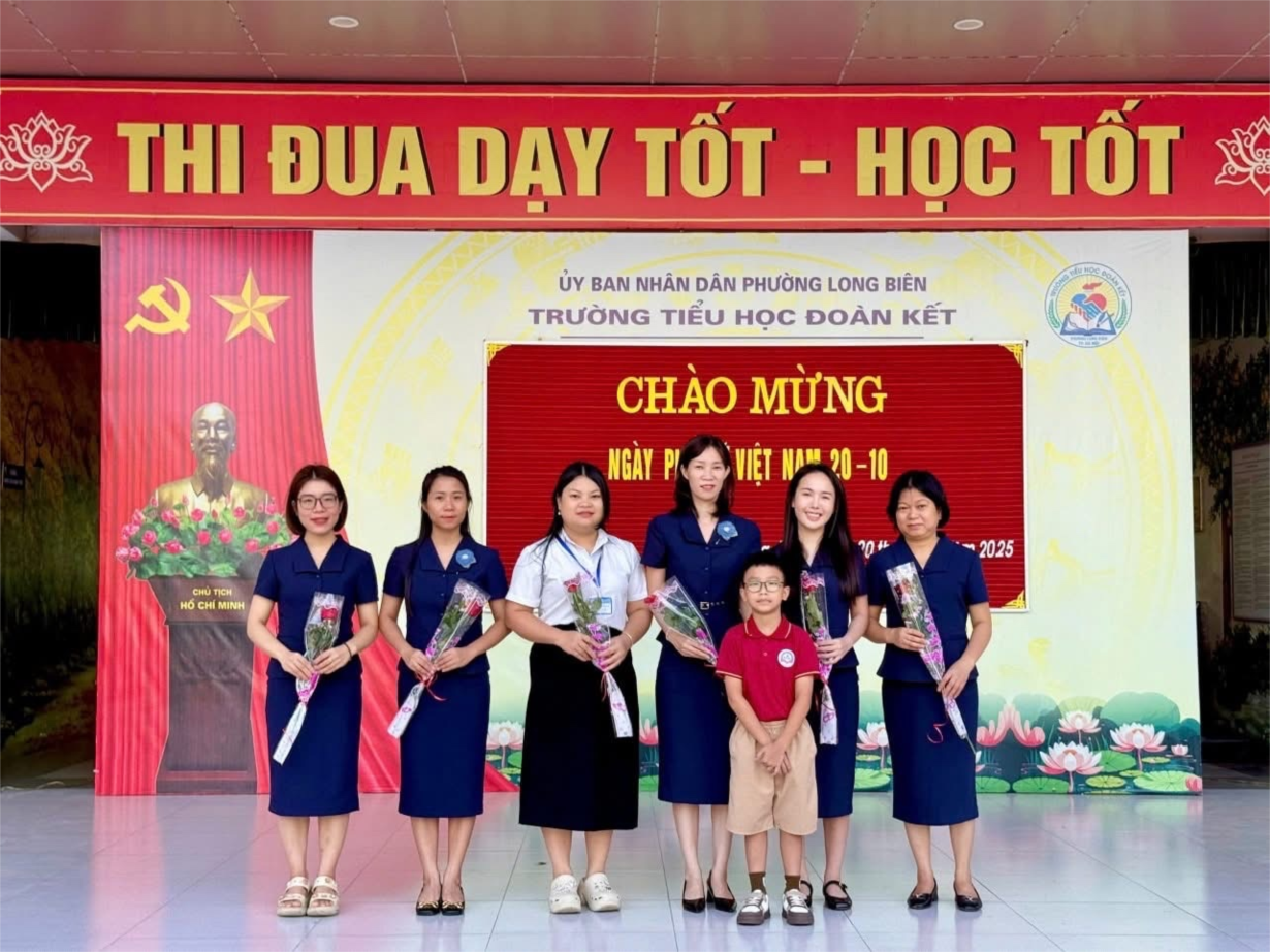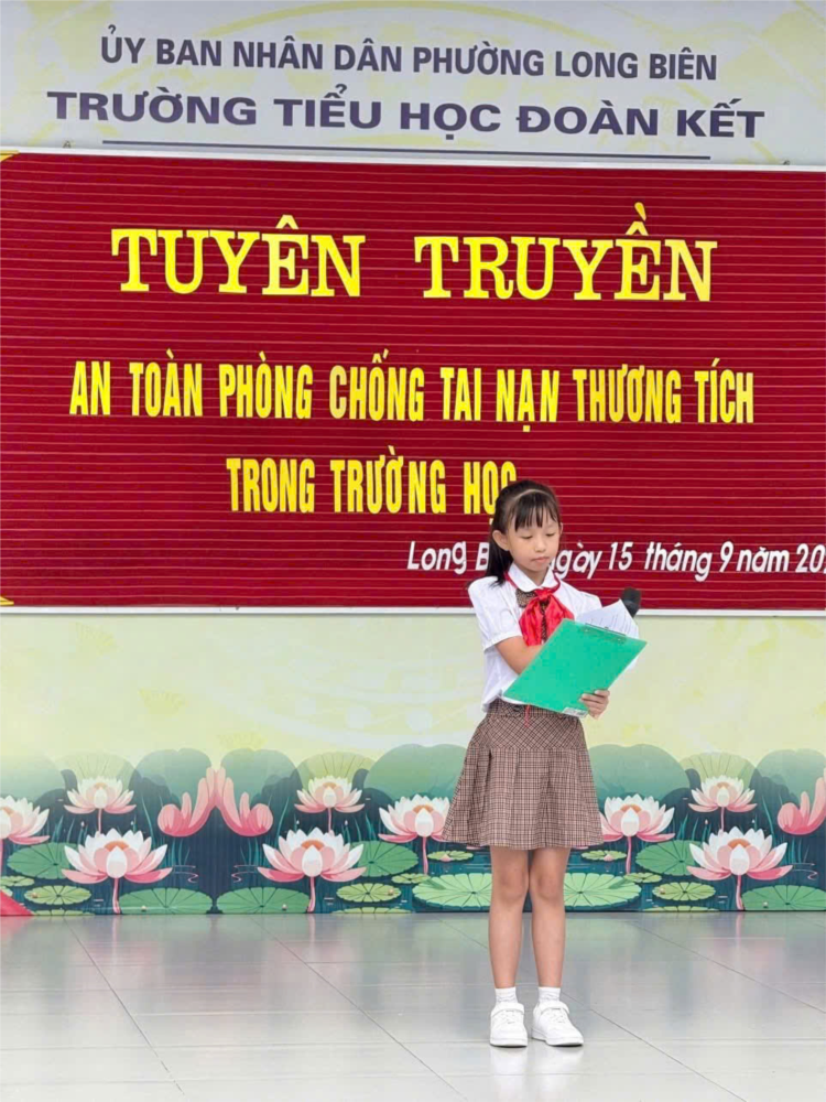 Học sinh nhà trường chào mừng Đại hội MTTQ phường Long Biên