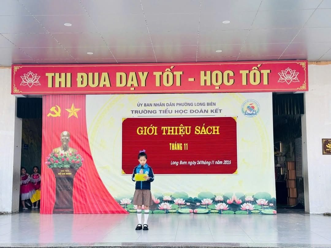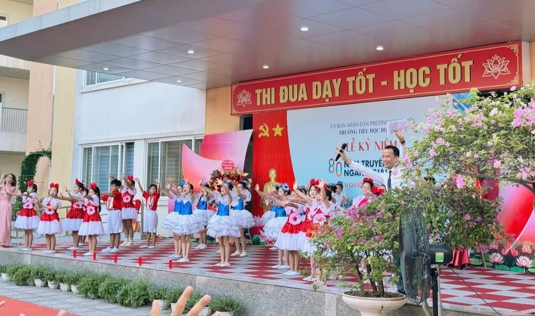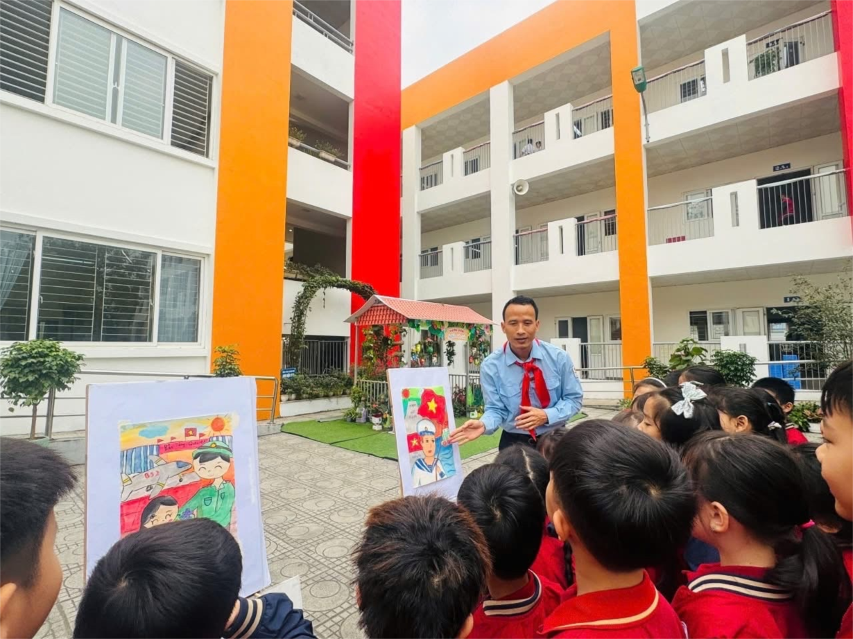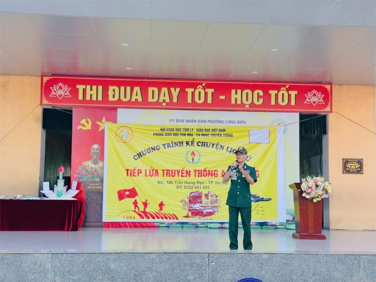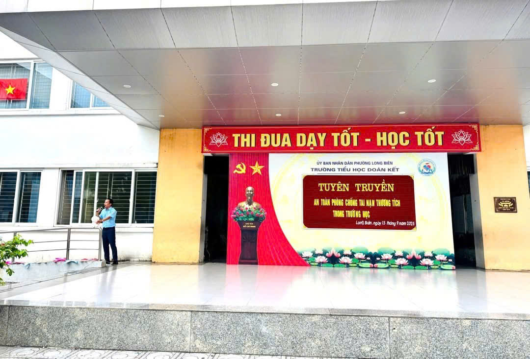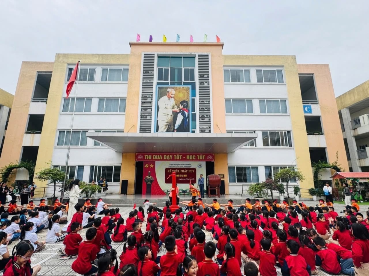 Học sinh nhà trường chào mừng Đại hội MTTQ phường Long Biên