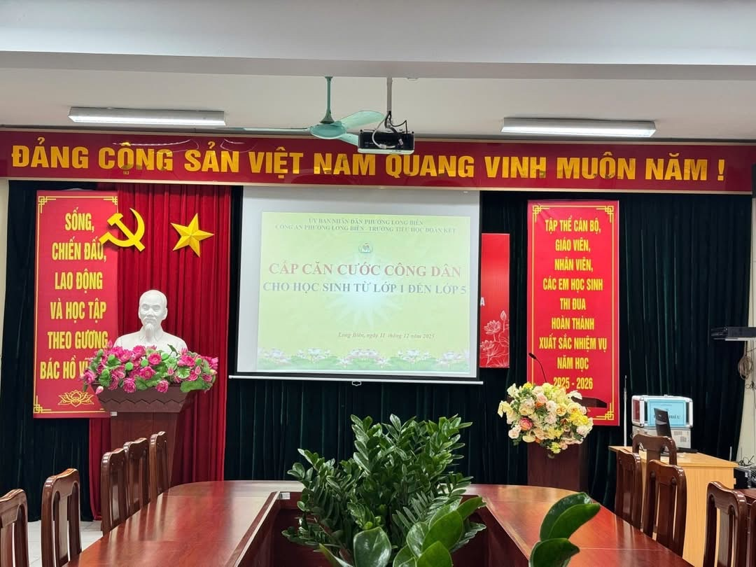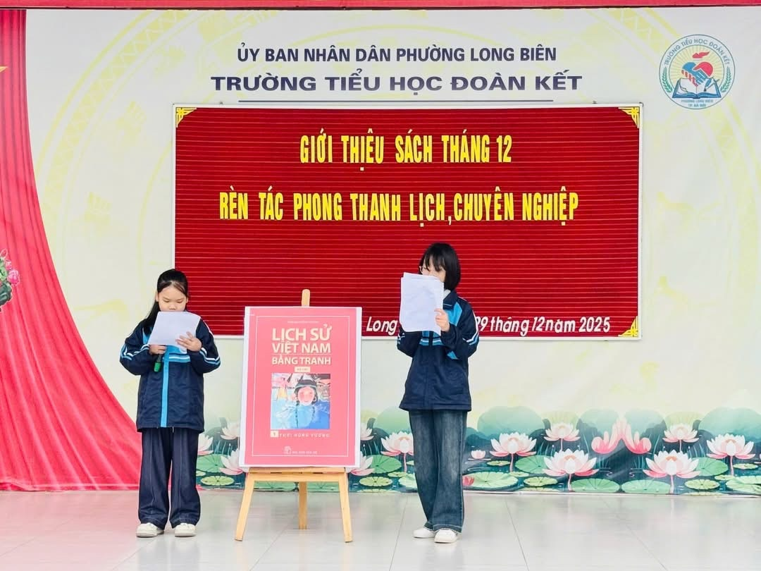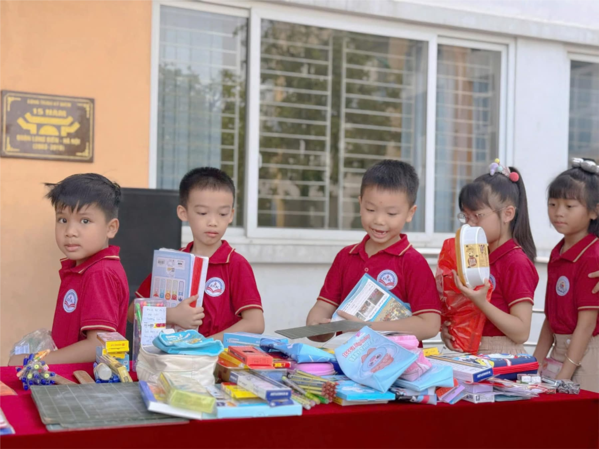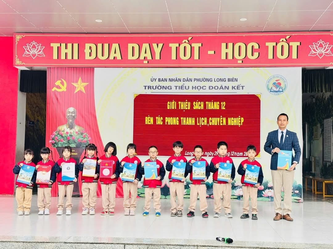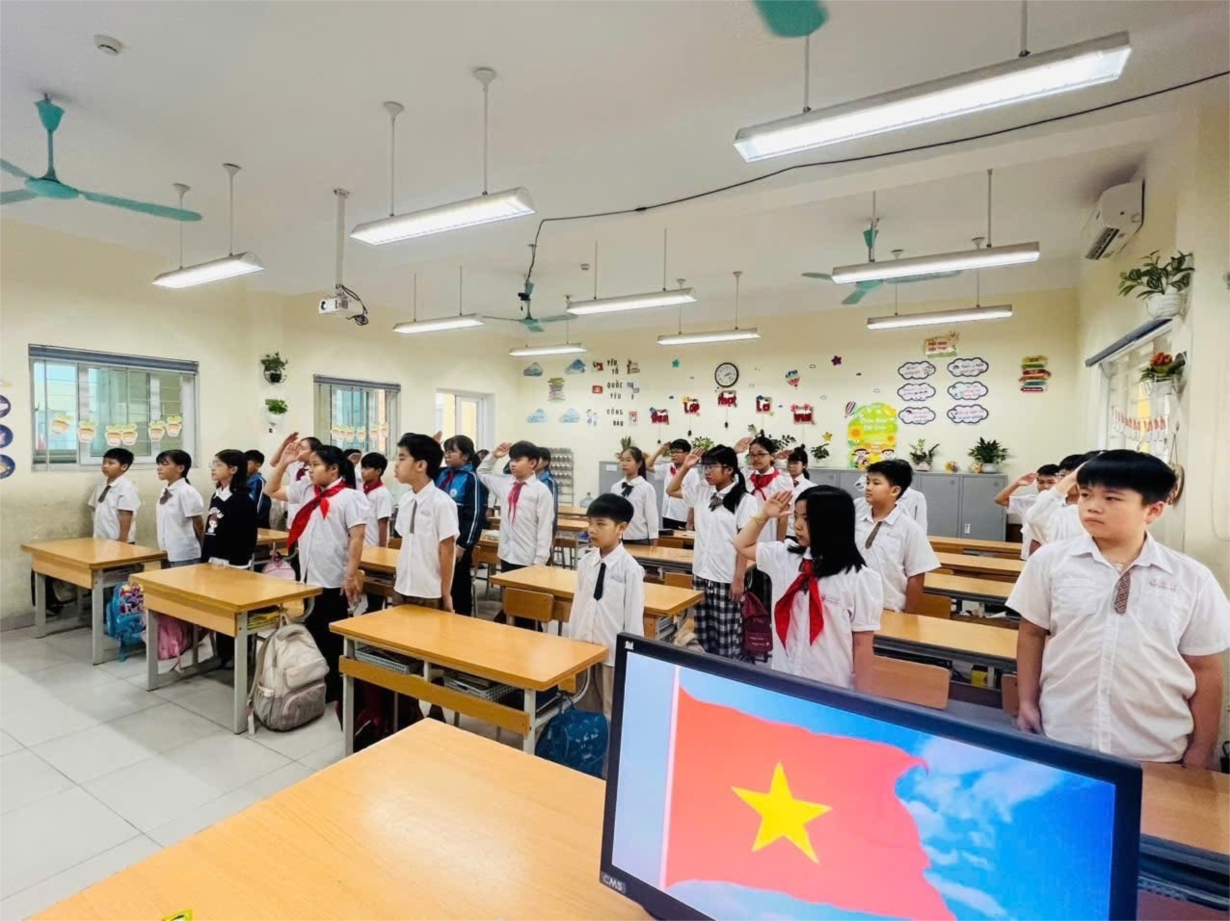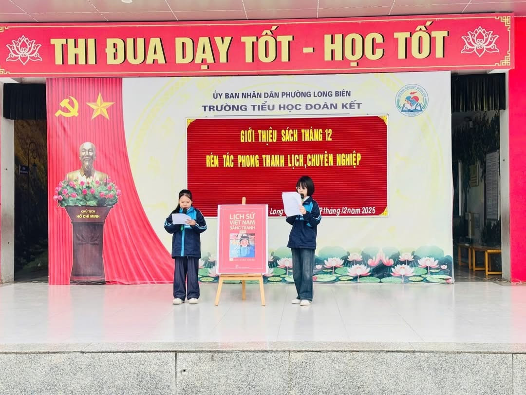 Học sinh nhà trường chào mừng Đại hội MTTQ phường Long Biên