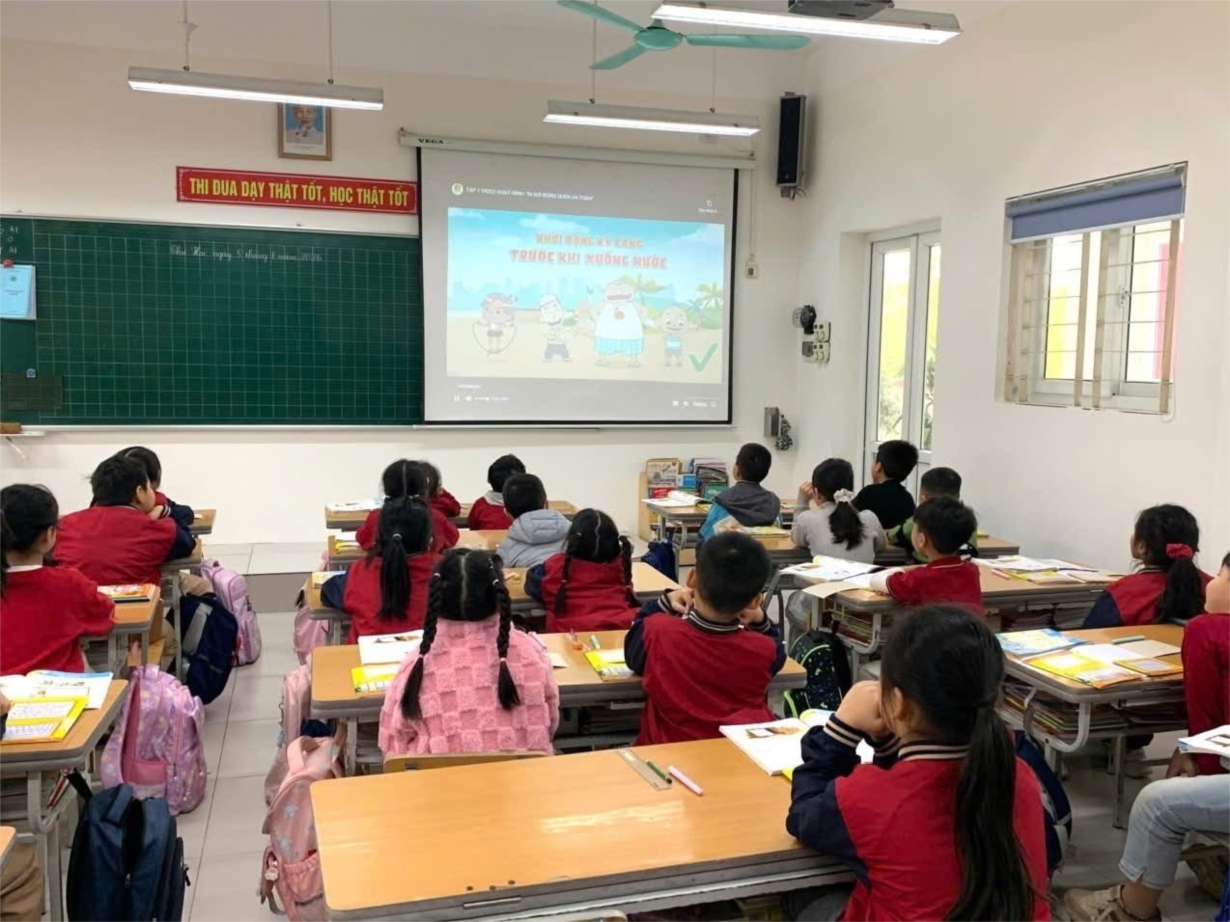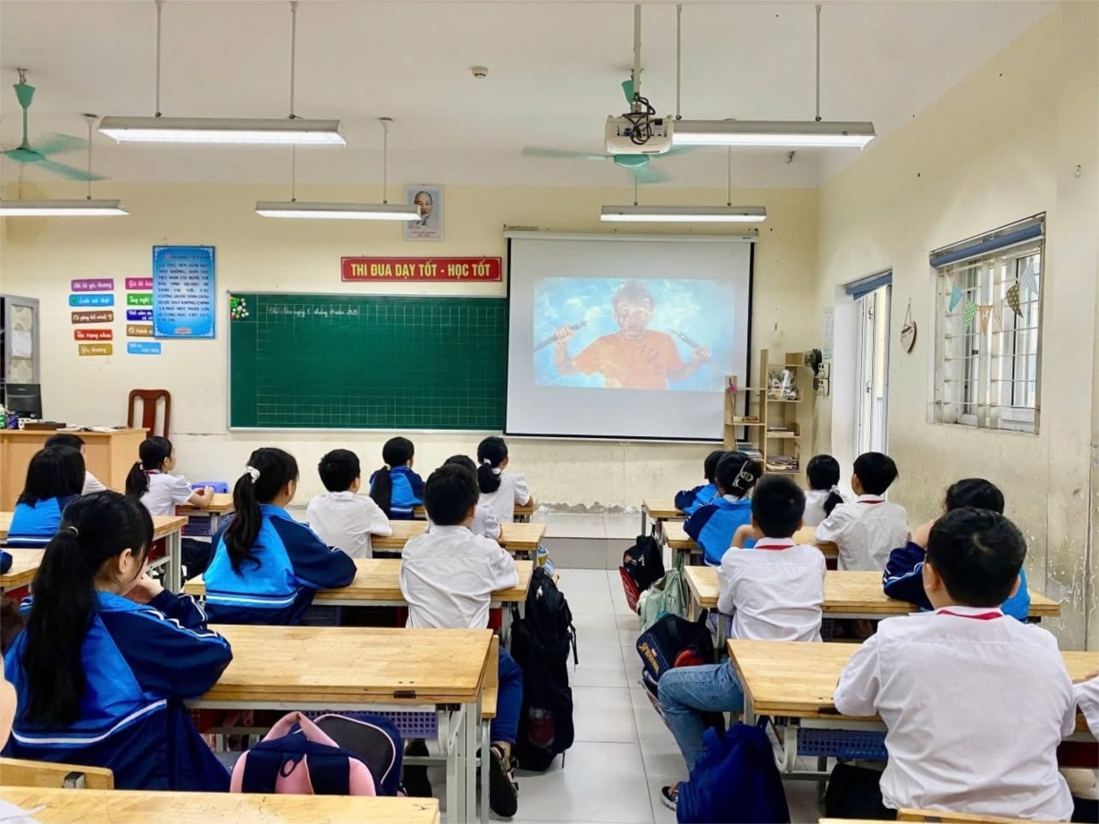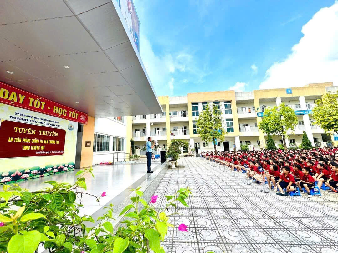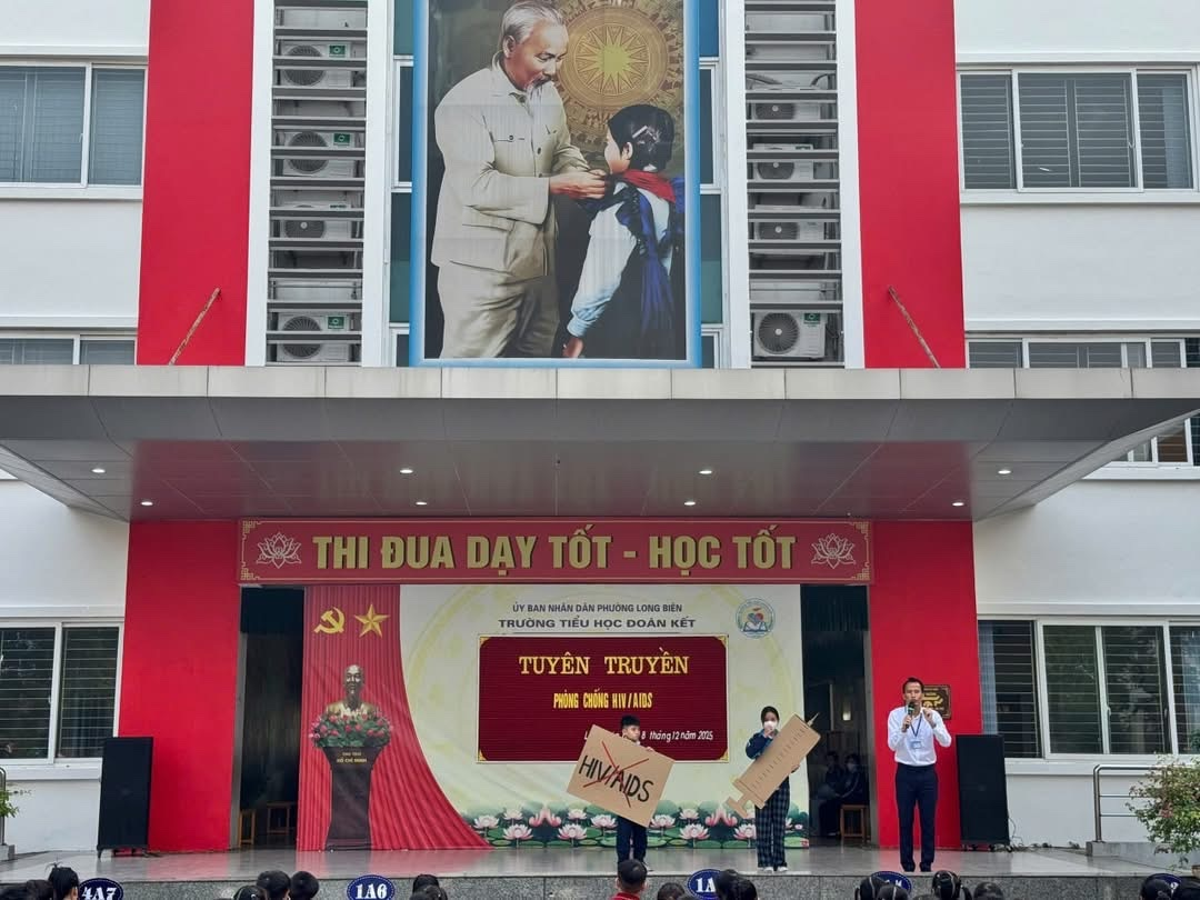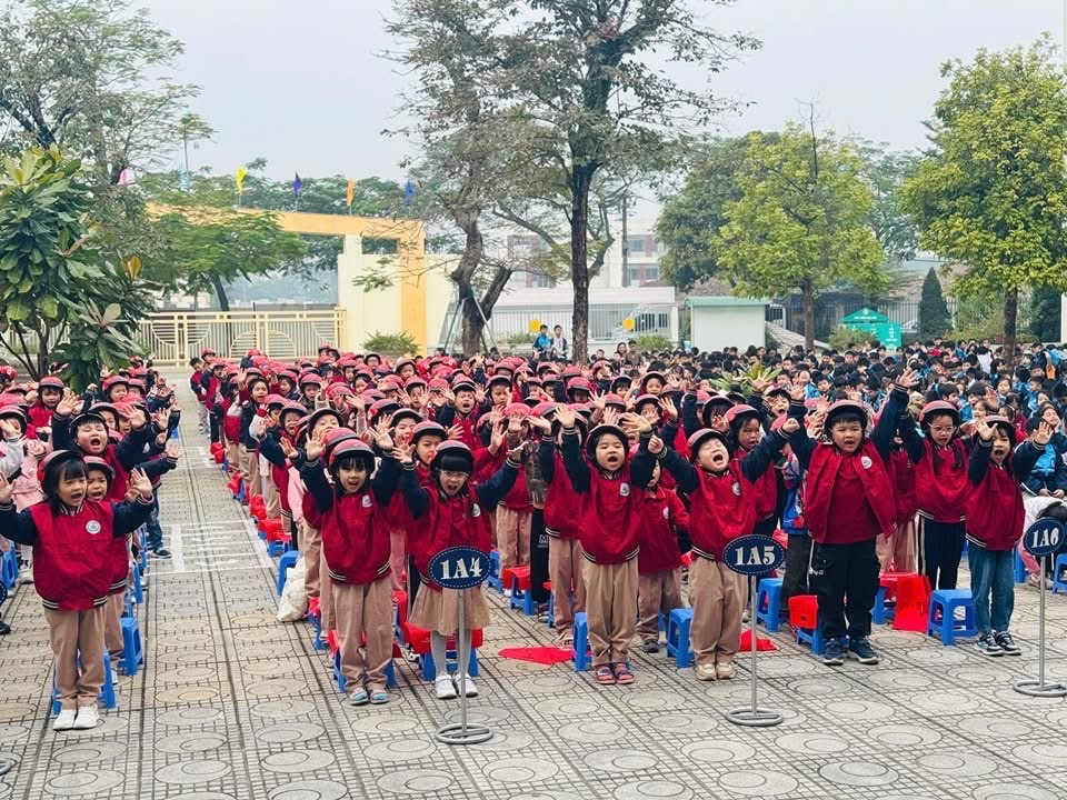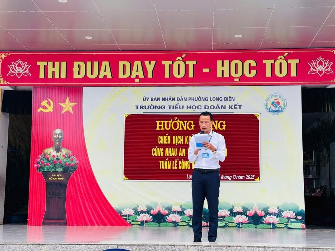 Đoàn viên nhà trường hưởng ứng Đại hội Đoàn phường Long Biên