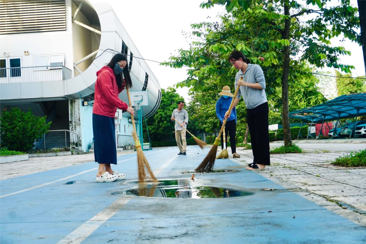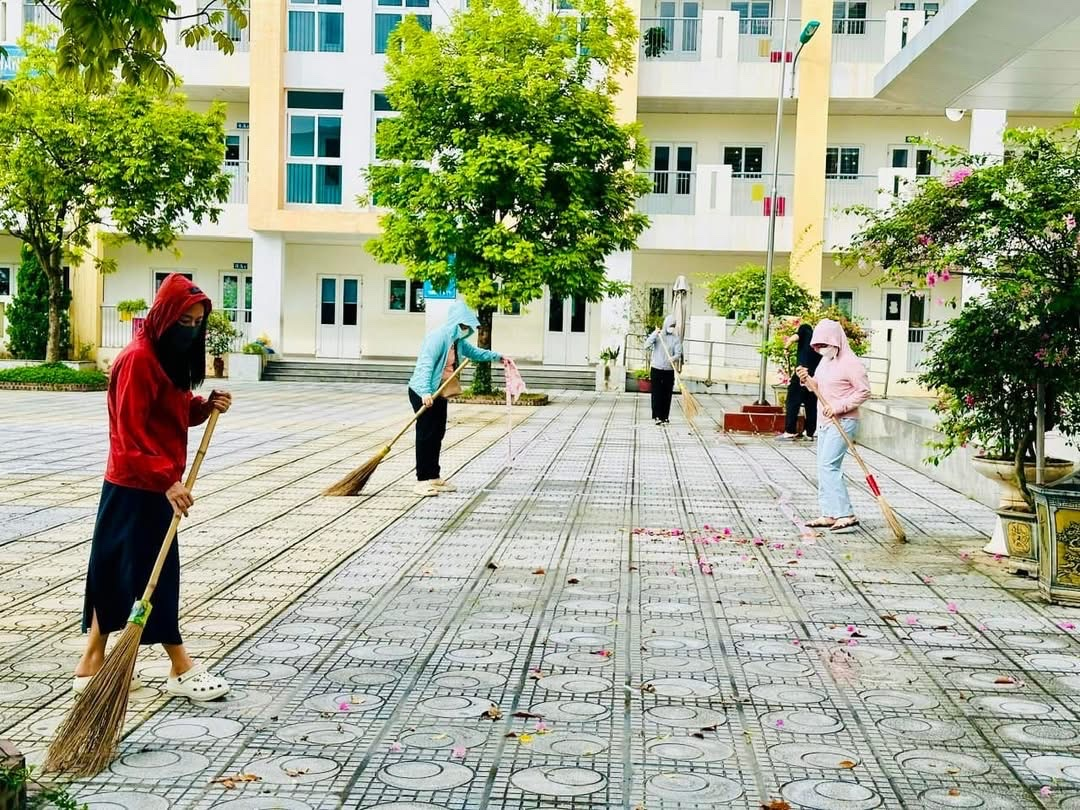 Giáo viên, nhân viên vệ sinh trường lớp sau ảnh hưởng mưa bão