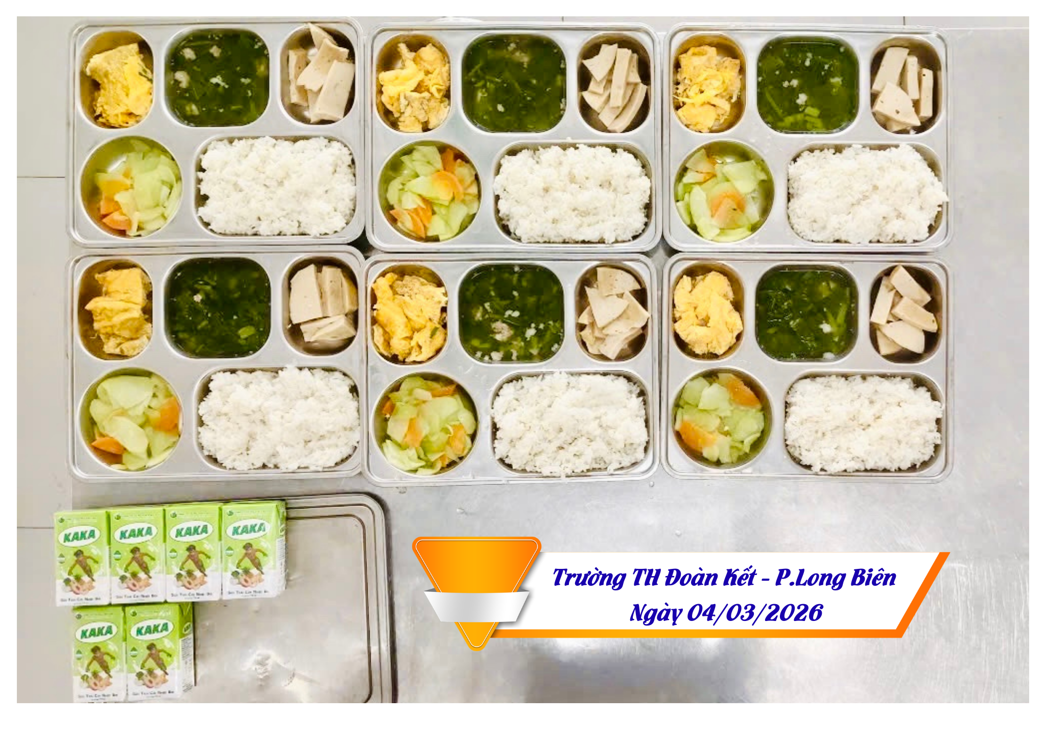 Hình ảnh suất ăn ngày 04/03/2026 của HS trường TH Đoàn Kết, phường Long Biên, HN