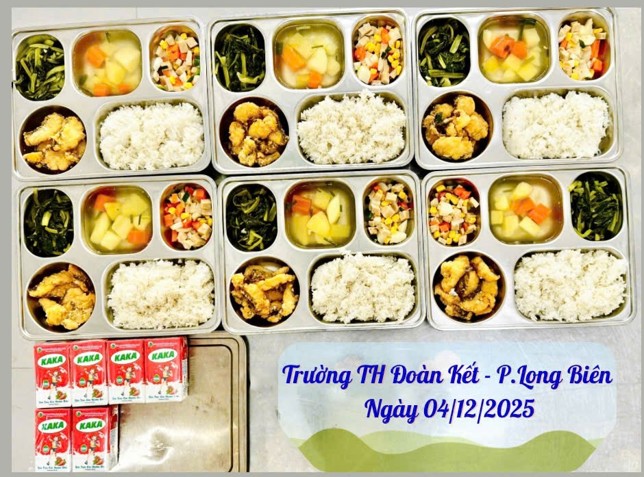 Hình ảnh suất ăn ngày 04/12/2025 của HS trường TH Đoàn Kết, Long Biên