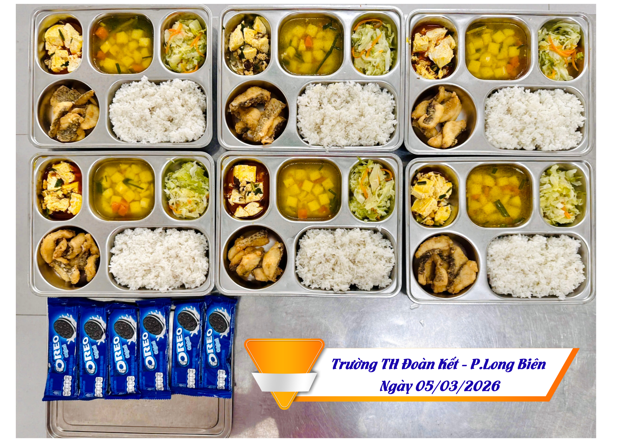 Hình ảnh suất ăn ngày 05/03/2026 của HS trường TH Đoàn Kết, phường Long Biên, HN