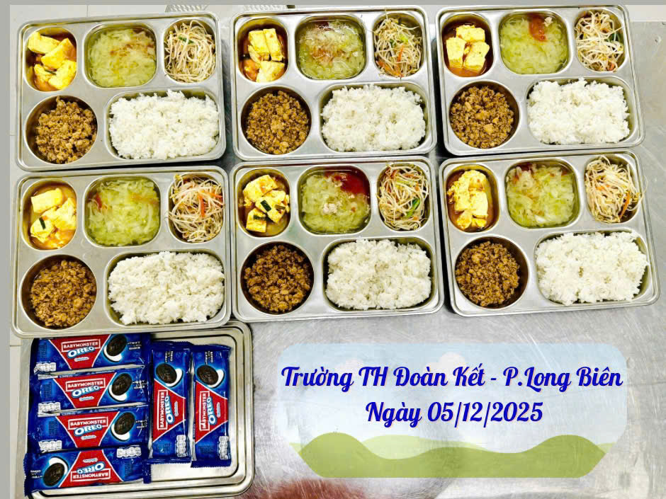 Hình ảnh suất ăn ngày 05/12/2025 của HS trường TH Đoàn Kết, Long Biên
