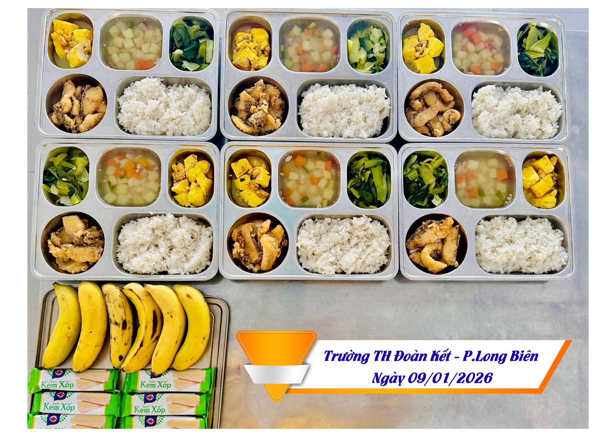 Hình ảnh suất ăn ngày 09/01/2026 của HS trường TH Đoàn Kết, phường Long Biên, HN