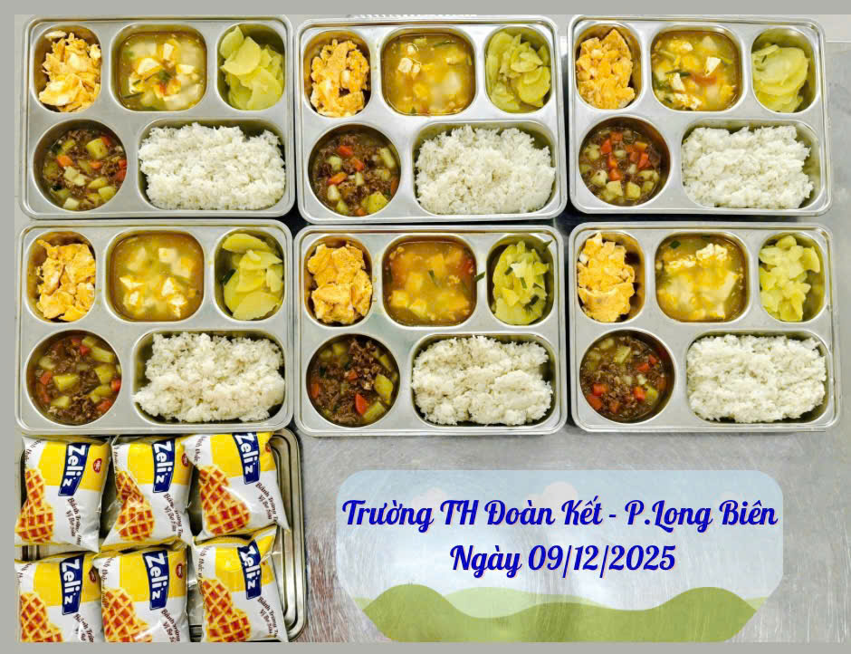 Hình ảnh suất ăn ngày 09/12/2025 của HS trường TH Đoàn Kết, Long Biên