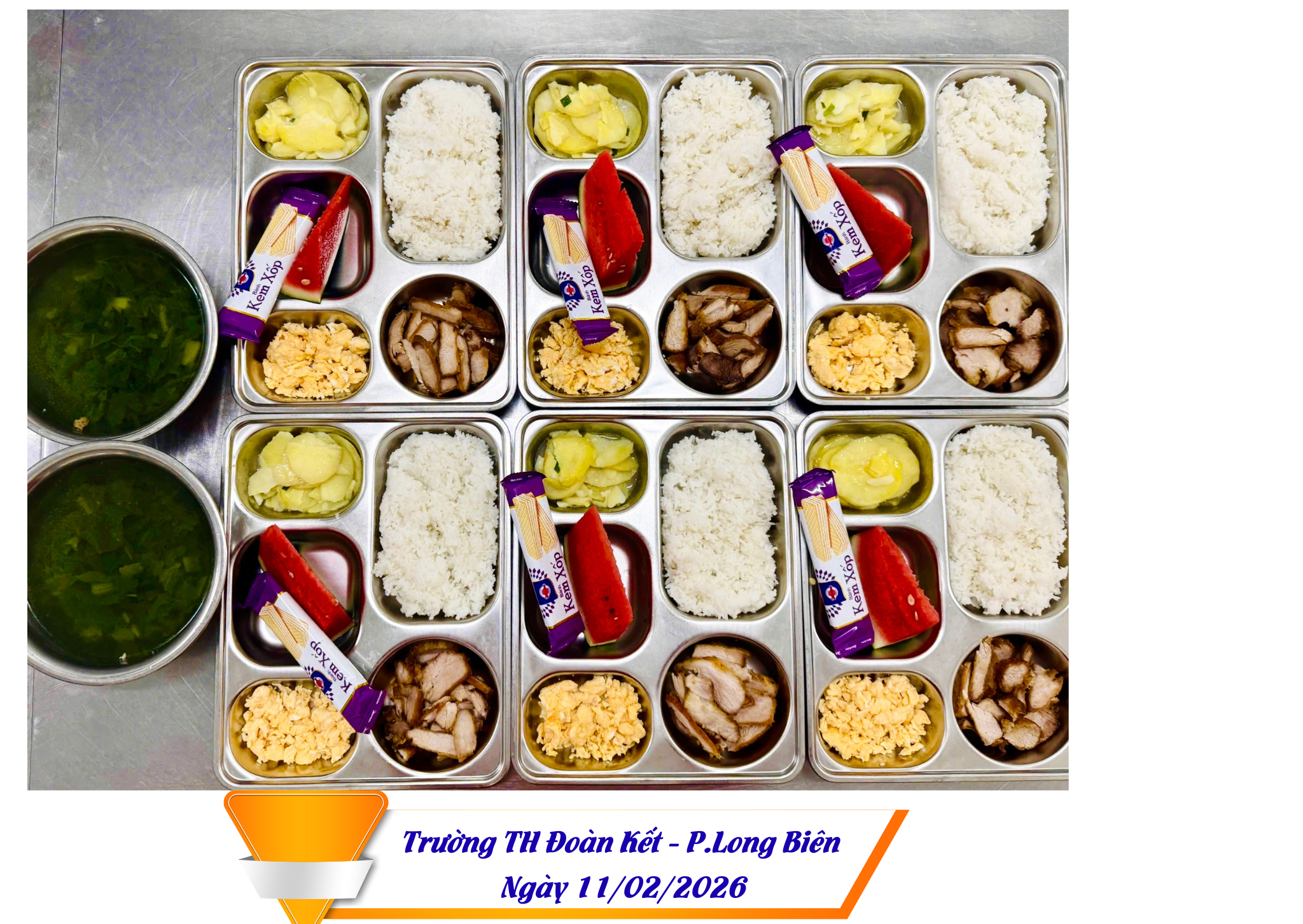 Hình ảnh suất ăn ngày 11/02/2026 của HS trường TH Đoàn Kết, phường Long Biên, HN