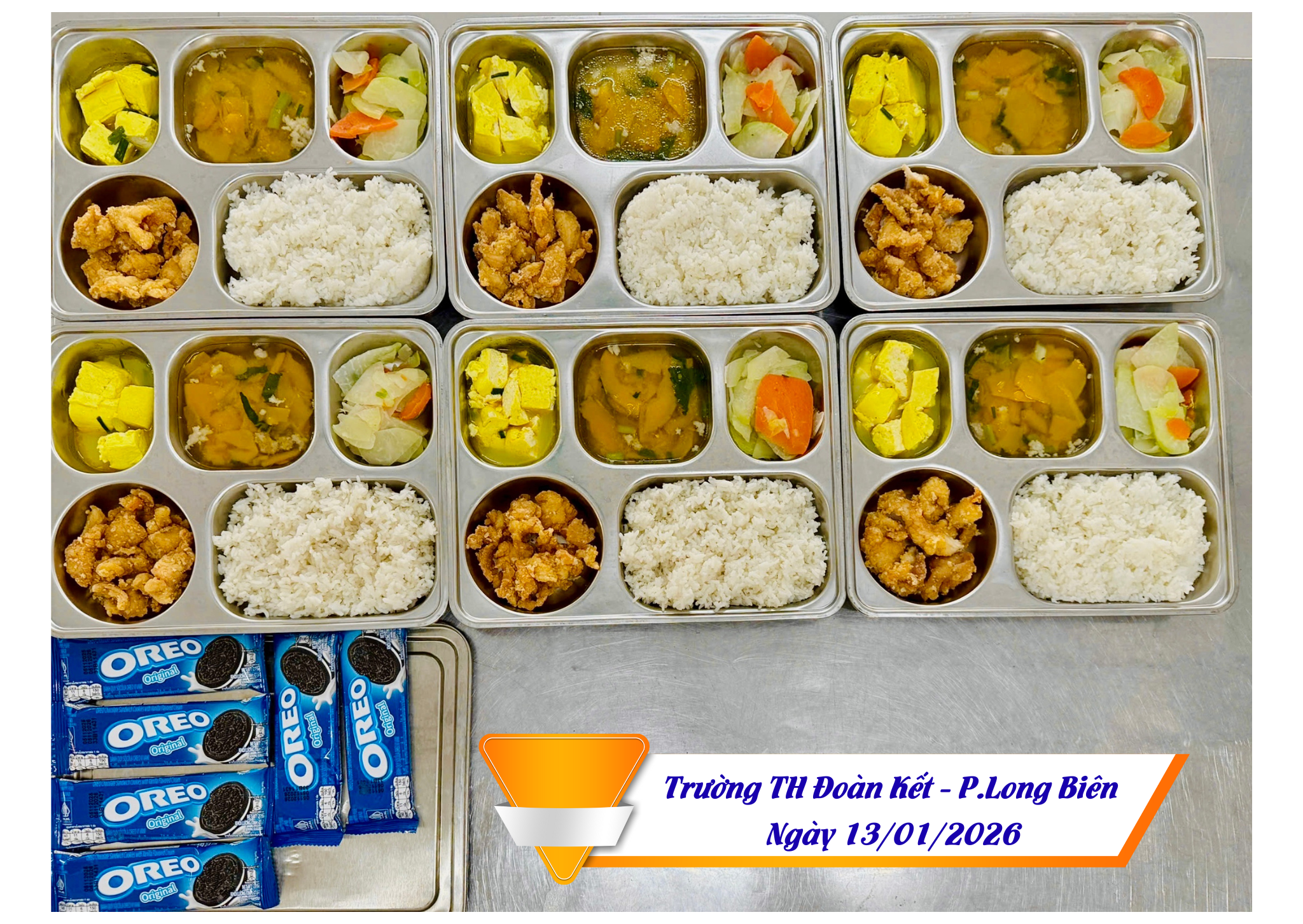 Hình ảnh suất ăn ngày 13/01/2026 của HS trường TH Đoàn Kết, phường Long Biên, HN