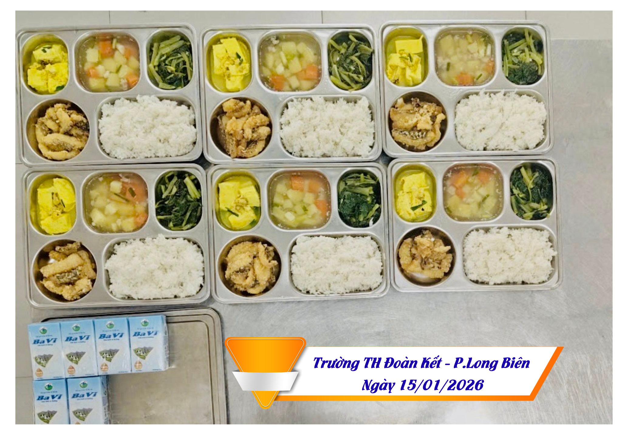 Hình ảnh suất ăn ngày 15/01/2026 của HS trường TH Đoàn Kết, phường Long Biên, HN