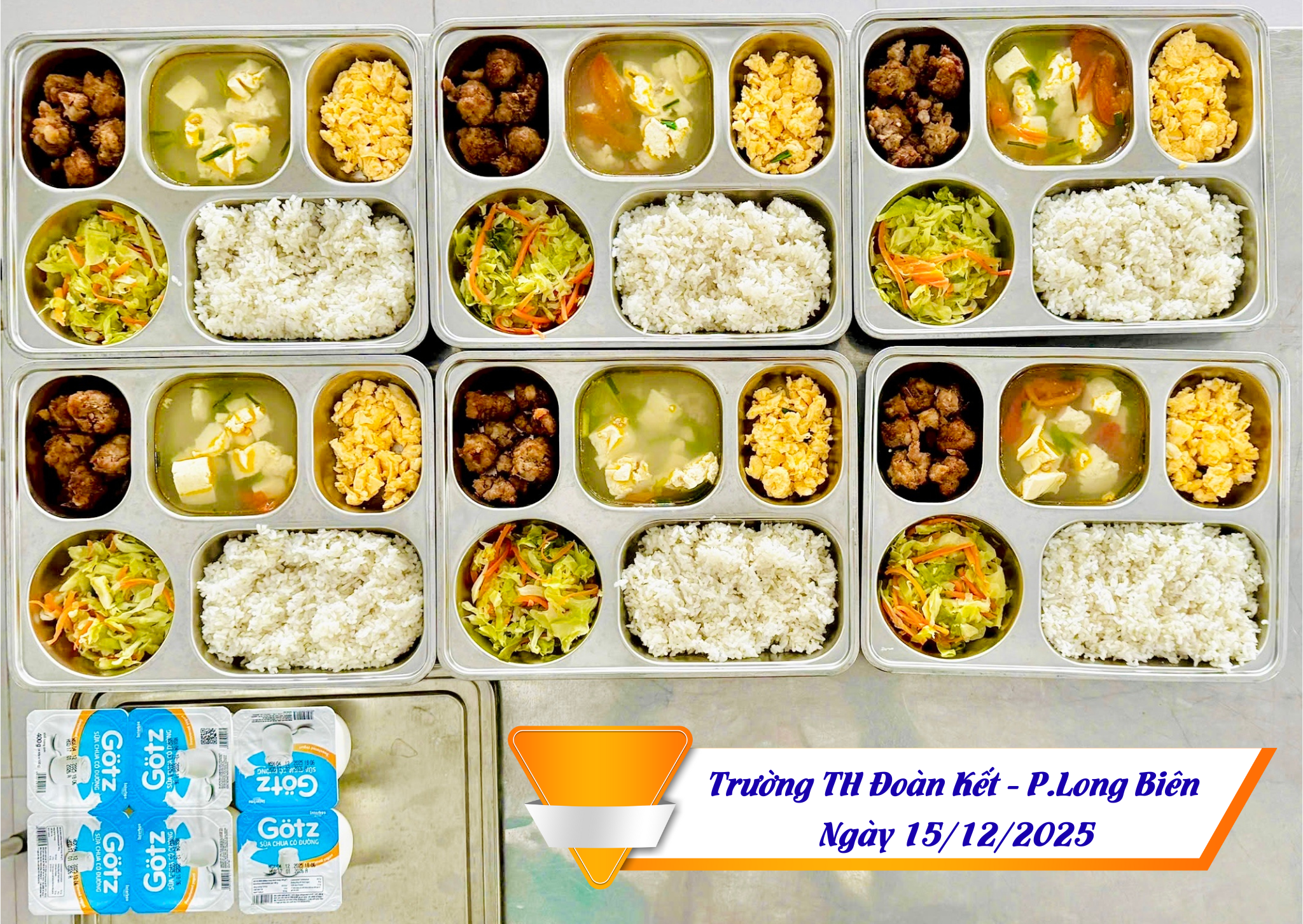 Hình ảnh suất ăn ngày 15/12 của HS trường TH Đoàn Kết, LB, HN