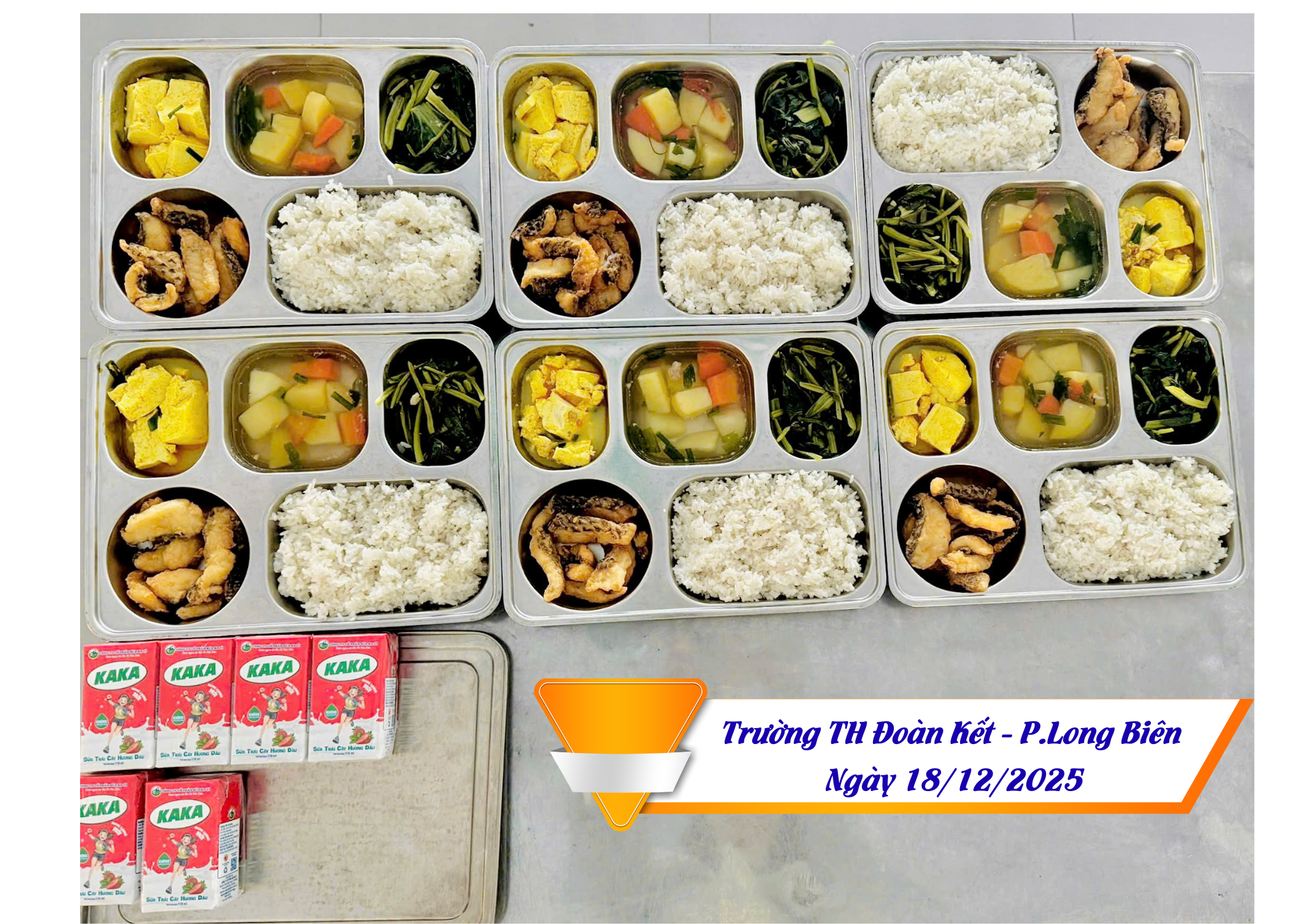 Hình ảnh suất ăn ngày 18/12/2025 của HS trường TH Đoàn Kết, LB, HN