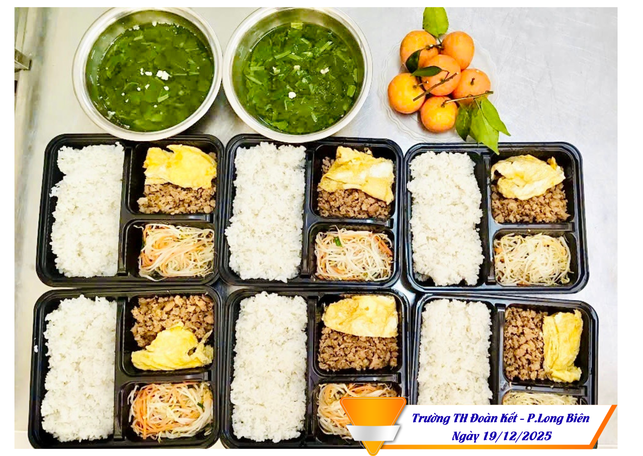 Hình ảnh suất ăn ngày 19/12/2025 của HS trường TH Đoàn Kết, LB, HN