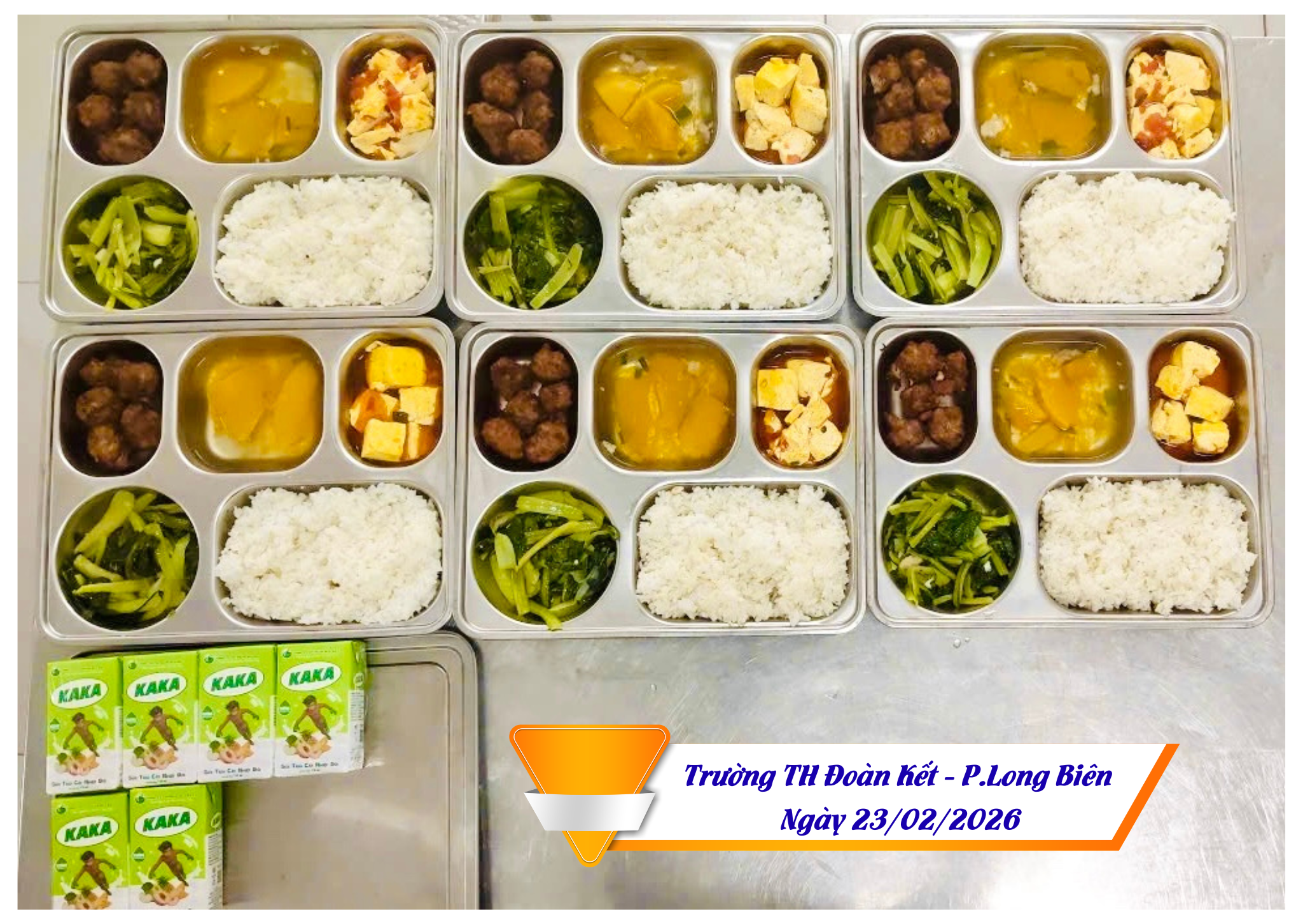 Hình ảnh suất ăn ngày 23/02/2026 của HS trường TH Đoàn Kết, phường Long Biên, HN