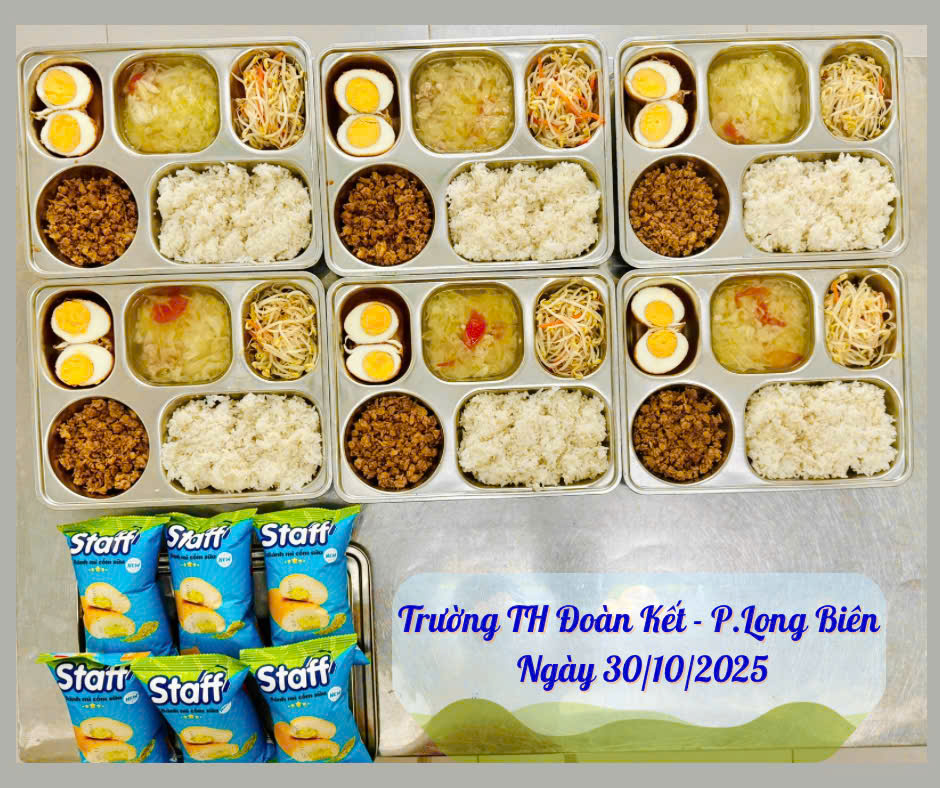 Hình ảnh suất ăn ngày 30/10/2025 của học sinh trường TH Đoàn Kết, phường Long Biên, HN
